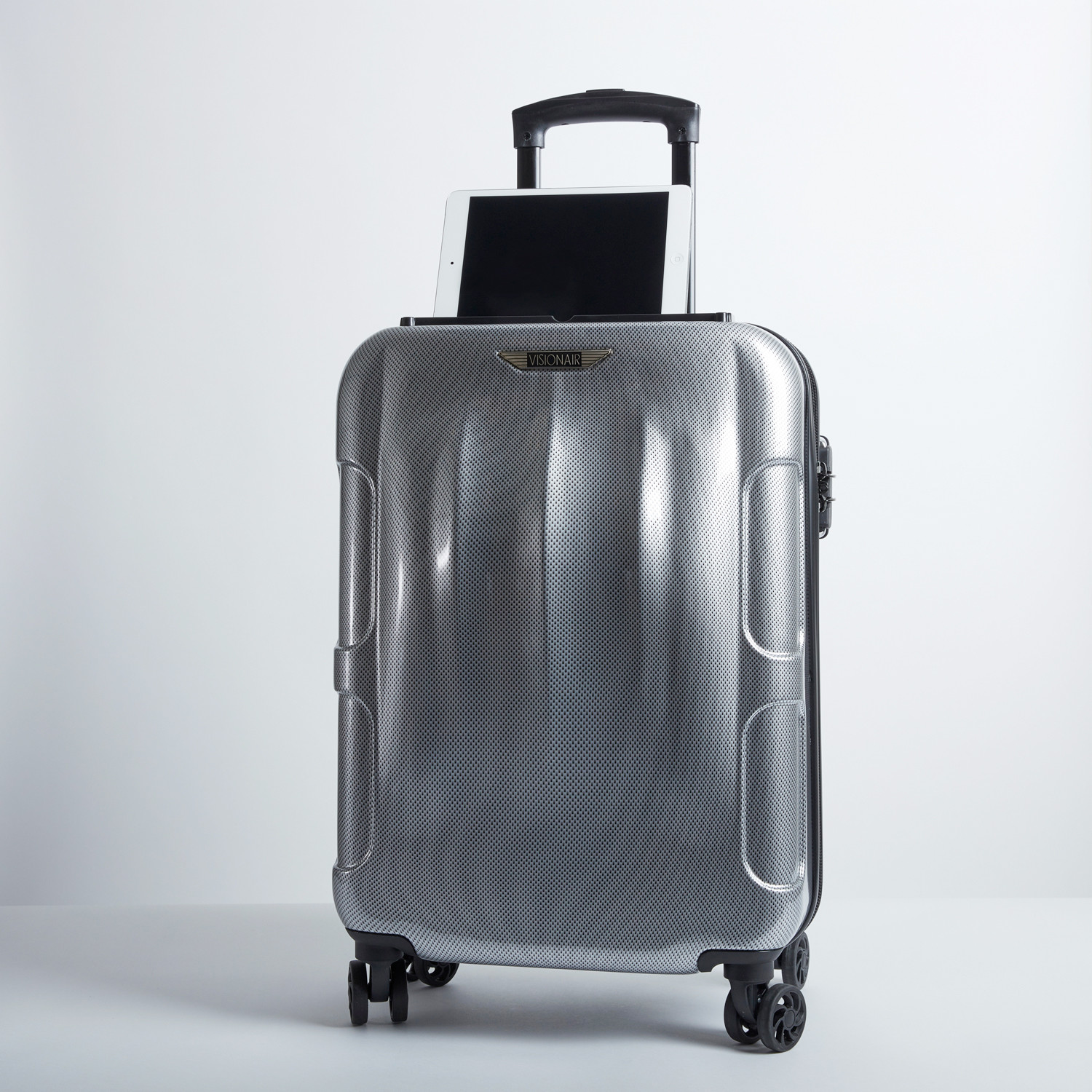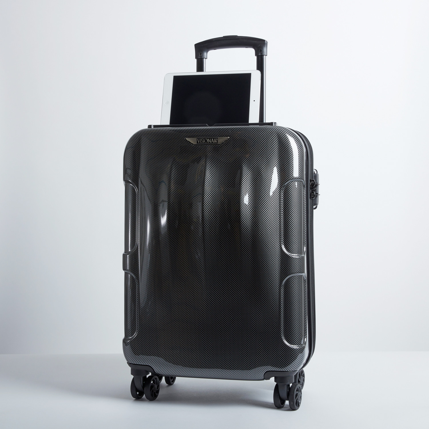 The Pod-Pal is a unique carry-on piece. It is the only case that has a place to rest your electronic devices. The slot atop the luggage can accommodate any current iPad or tablet and can be rested in a portrait or landscape position, to stand up your tablet while working, or hold it at the perfect angle for streaming video and movies during long waits at the airport.