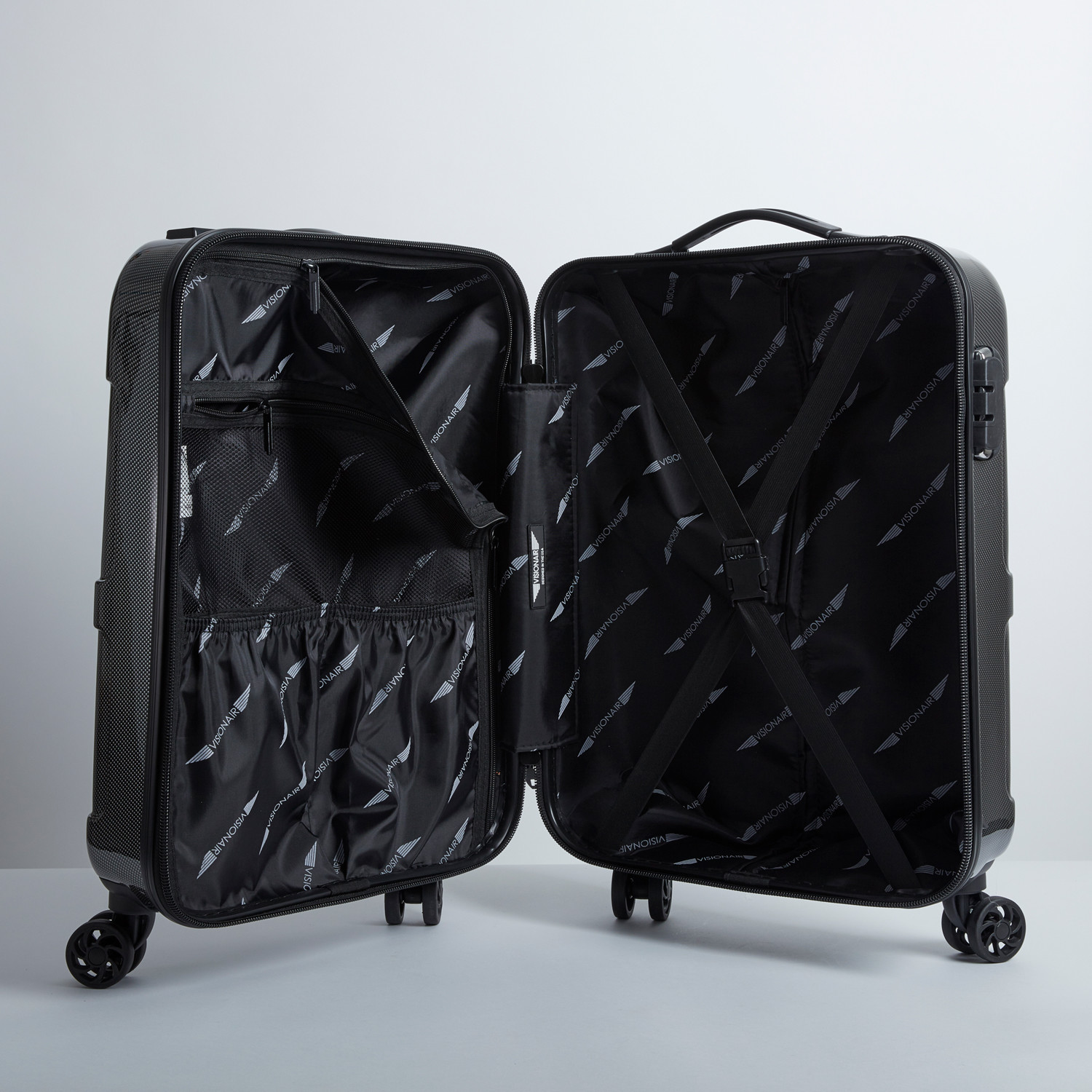 The luggage has ergonomically designed internal aluminum telescopic handle system with push-button locking for easy, one-handed use. It's also made with an extremely lightweight and impact resistant glossy hardside finish, and a fully-lined interior with a multitude of tie-downs to keep all of your belongings organized and protected on the go.