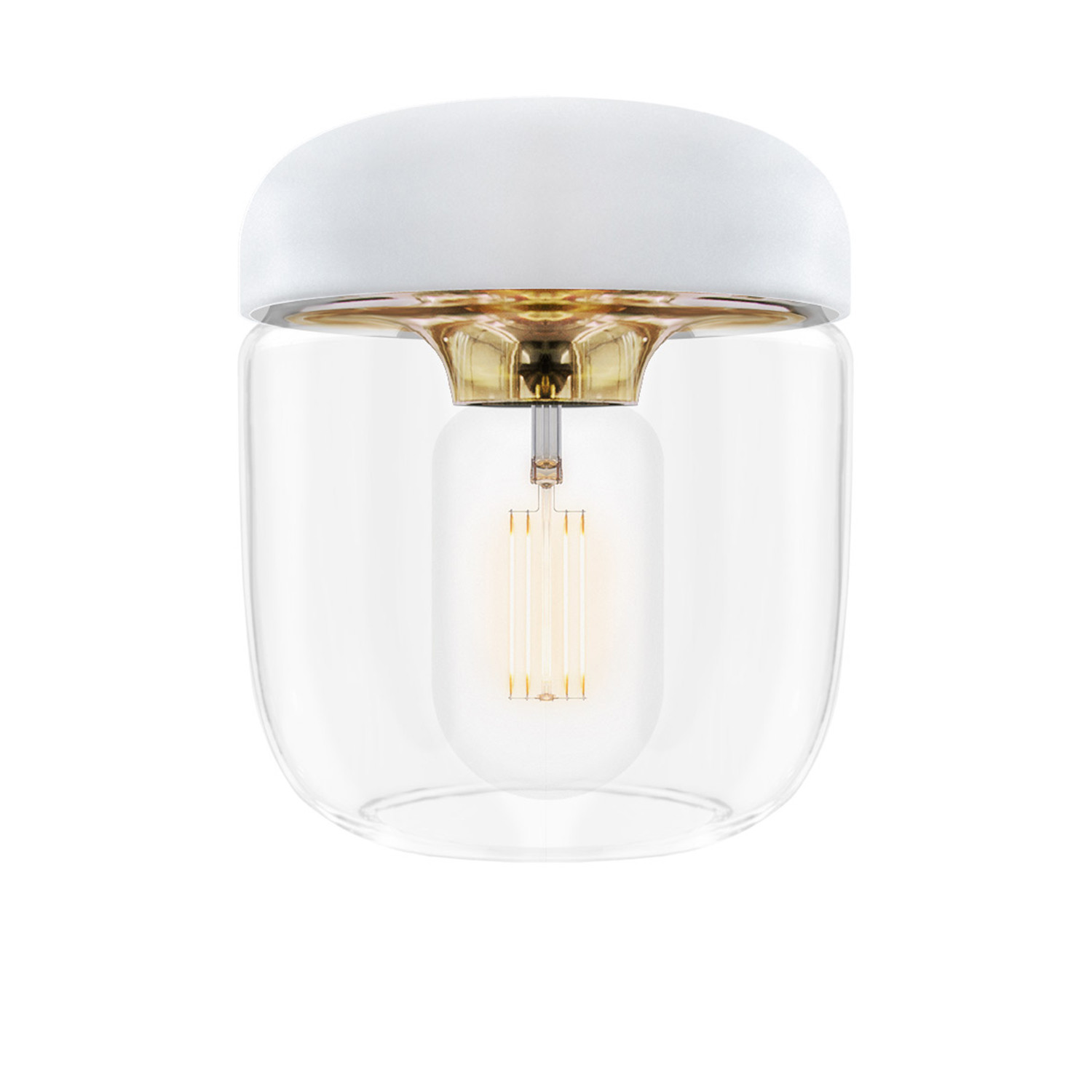 The VITA Acorn lamp is simple and picturesque, just like its namesake. The lamp's design is meant to evoke peaceful images of acorns falling in a forest of oak trees. Informed by an understated Danish approach to design, it consists of three sleek parts: a soft silicone cup, a smooth outer shell of glass, and the "kernel" with a distinctive metallic finish. The result is a subtle, one-of-a-kind piece that provides an earthy touch to any room.