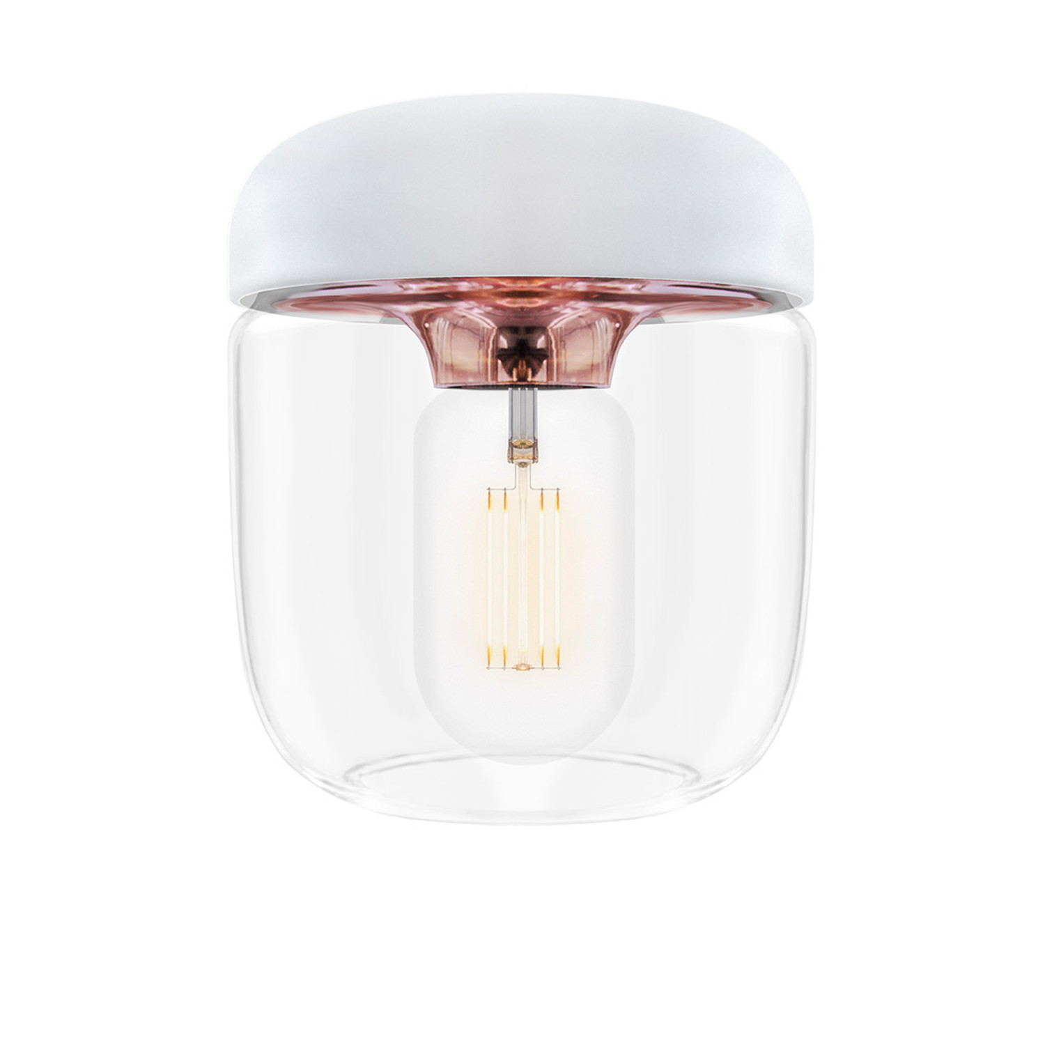 Acorn White Pendant + LED Bulb // Polished Copper (Hardwired)