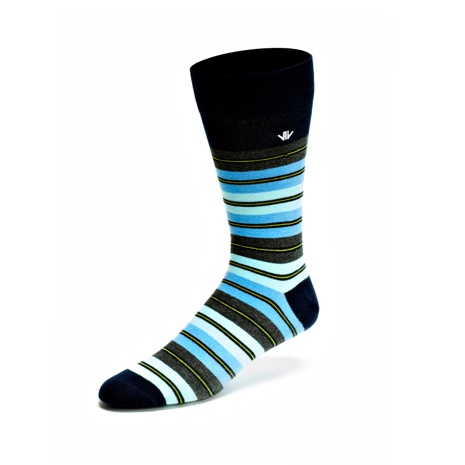 This unique aqua, blue and grey stripe design is the perfect dash of vivid flair to spice up your daily drab. Add some polished style to your three piece suit with the innovative and dashing pieces by Vivarati.
