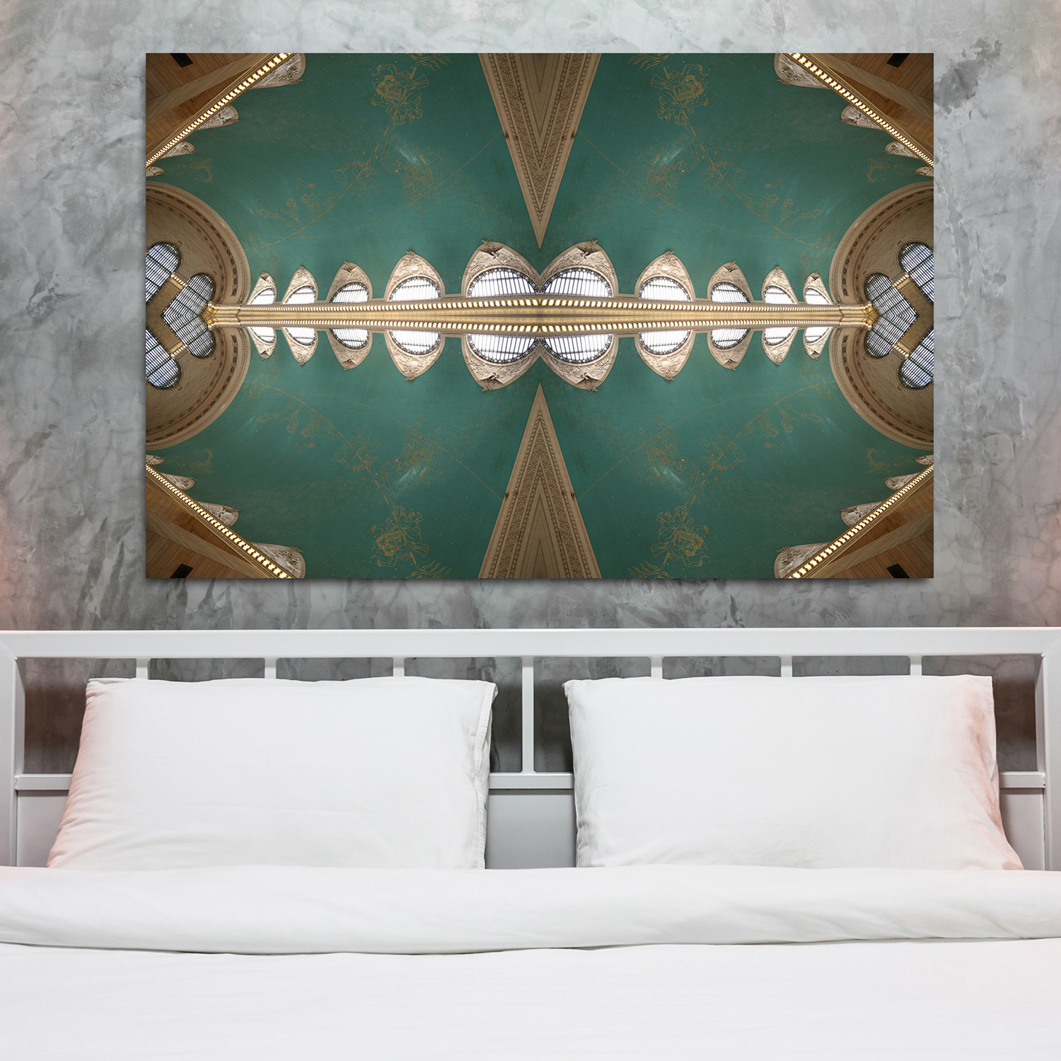 Grand Central is a vibrant piece of art that adds energy to any room. Each piece is uniquely created by layering images captured on film and printing them on canvas that has been stretched around a wooden frame.