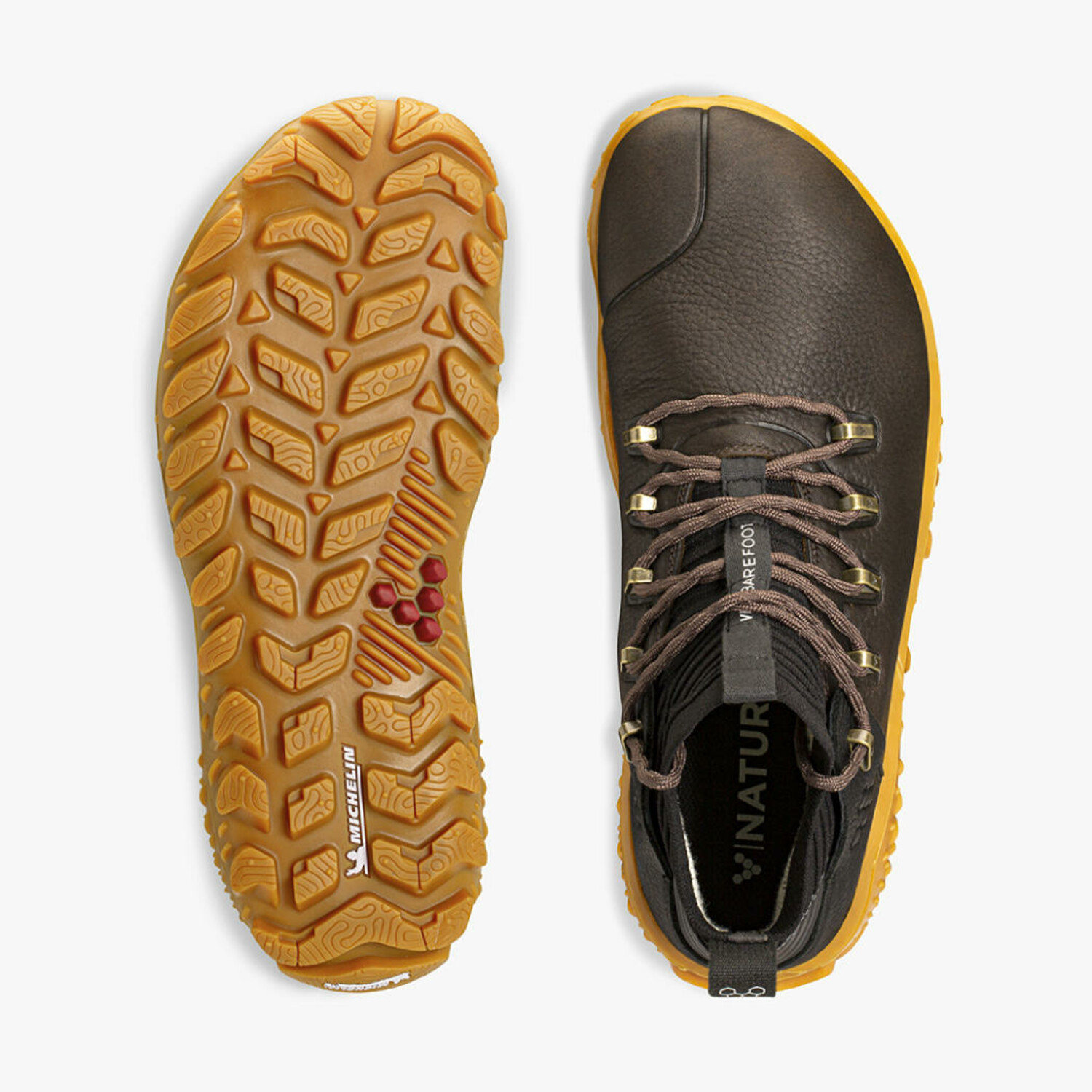 ESCape to reconnect to nature and rewild your feet, body and soul. Made with super-natural materials and a newly-engineered, super tough and flexible Michelin® outsole. Developed for extreme terrains, forests, deserts and jungles. Lightweight for dawn to dusk explorers. Foot shaped (not shoe shaped), to let your feet do their natural thing. Wide to allow for natural stability. Thin to enable you to feel more. Flexible to enable natural movement. Woolmark® knitted collar for perfect fit and natural movement freedom. Water-resistant with tough-wearing durable wild hide leather panels. ESC Michelin® rubber sole for ultimate, flexible grip across the wildest terrains.