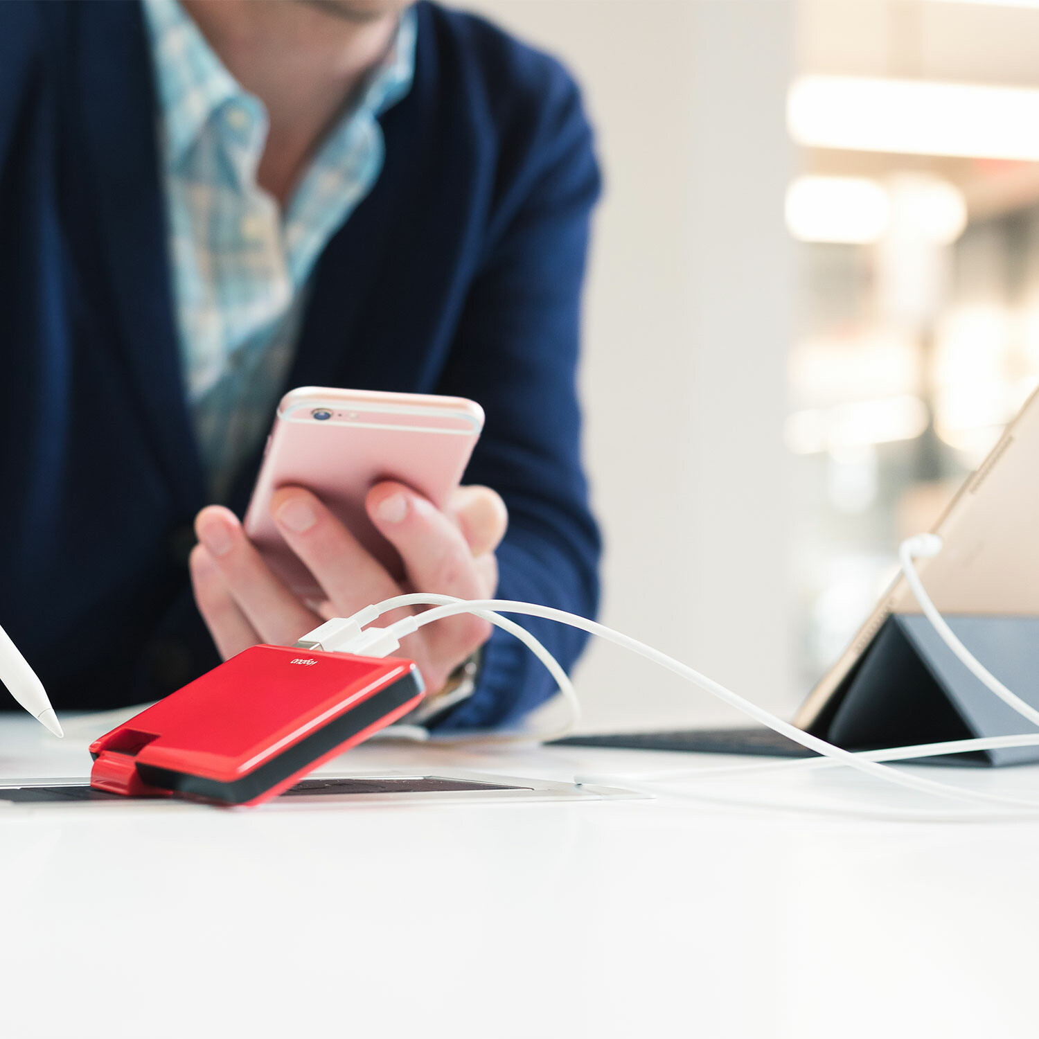 Charger Pro features a beautiful, glossy, and ultra-thin design that fits perfectly in in your pocket or bag. The innovative folding swivel plug rotates 270 degrees so you can plug in even when the only open outlet is in a crowded power strip or behind furniture. A fireproof construction and Smart IC design protects you and your devices from overheating, overcurrent, and over voltage. Whether traveling cross country or around the world, Charger Pro is universal compatible with support for 120 - 240V so you can charge up virtually anywhere.