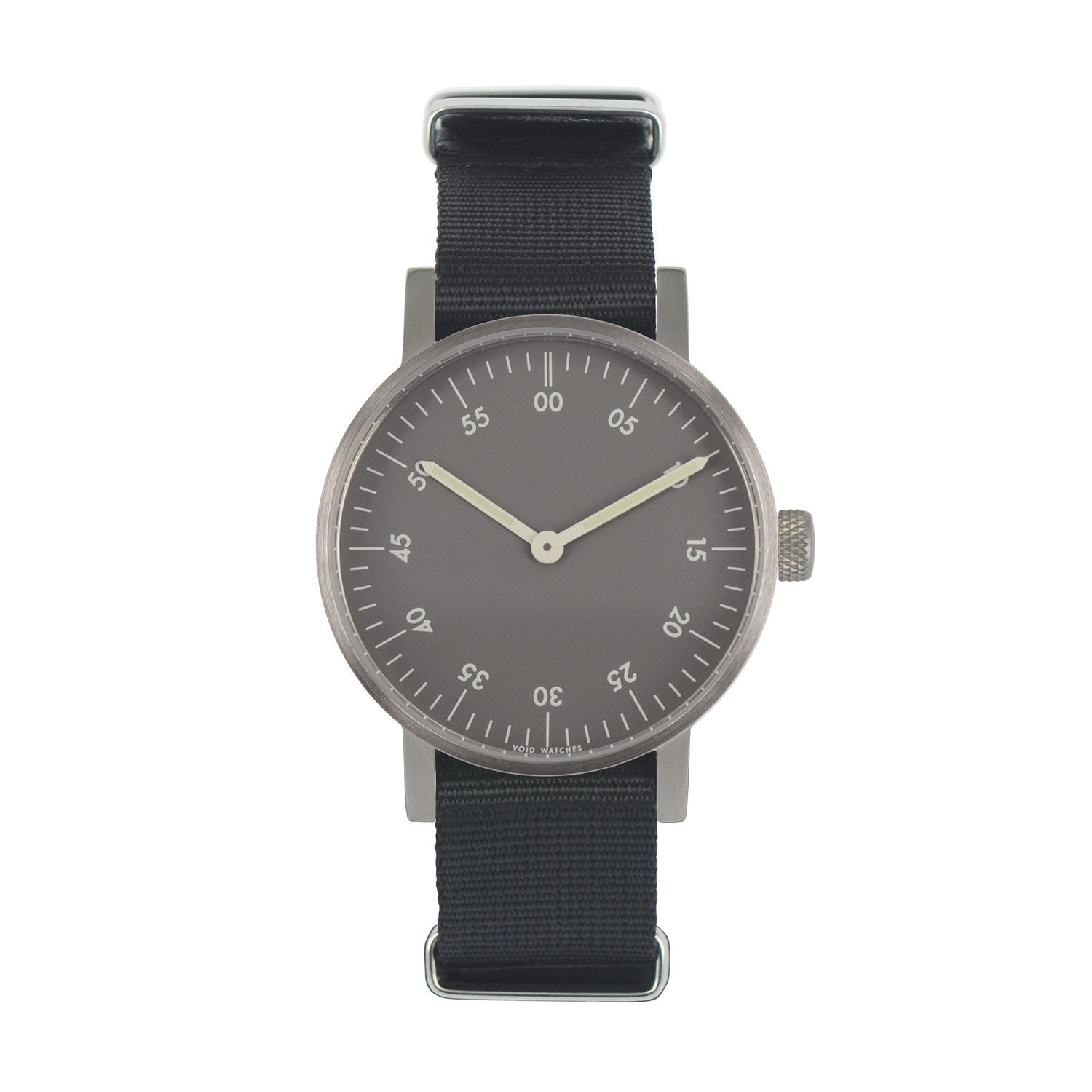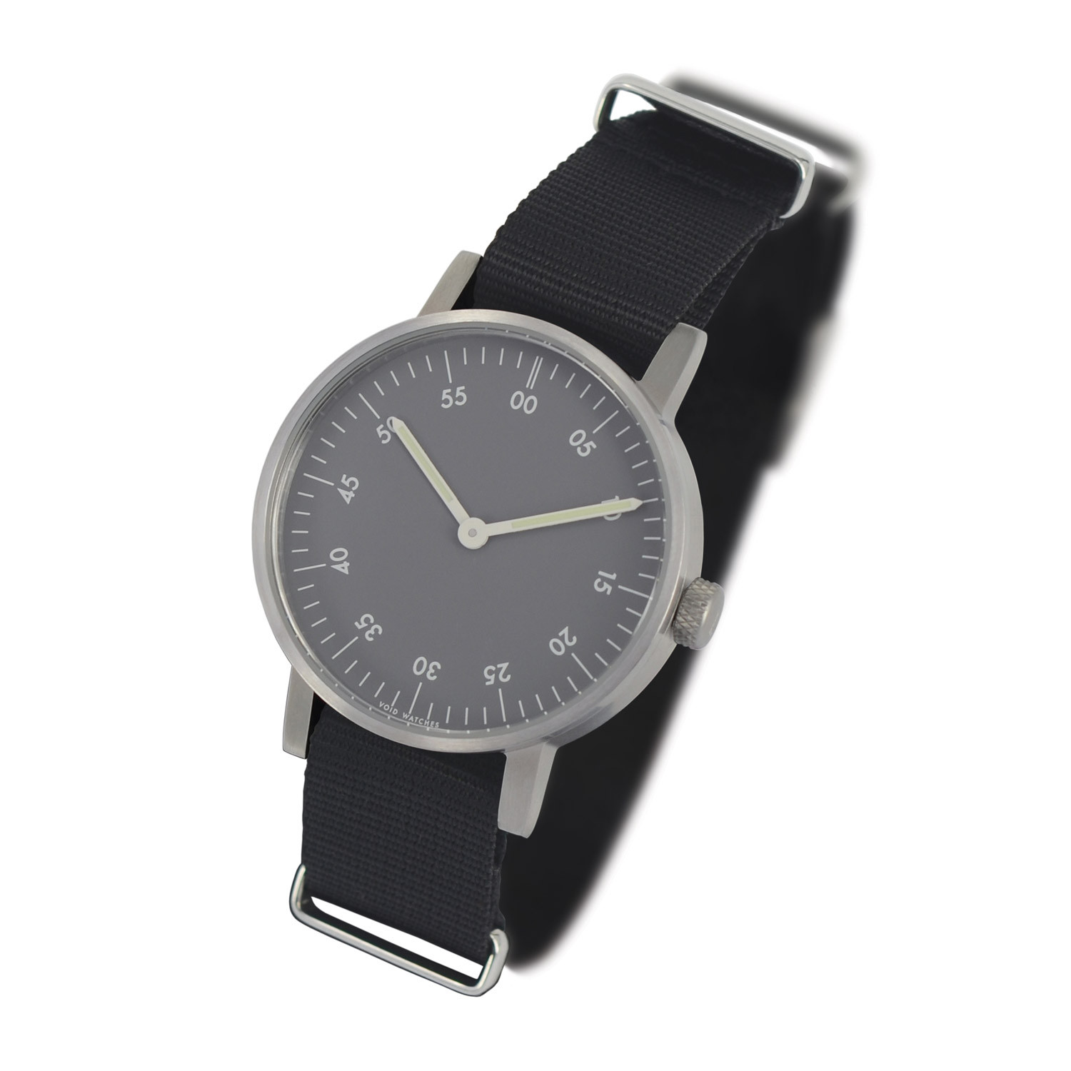 This watch is playful and elegant with grey/black coloration and Japan Quartz Miyota movement. It's water resistant to 3 ATM and features a nylon strap, analogue display, concentric numbers and a stainless steel case. This timepiece has a 2 year warranty, courtesy of Void.