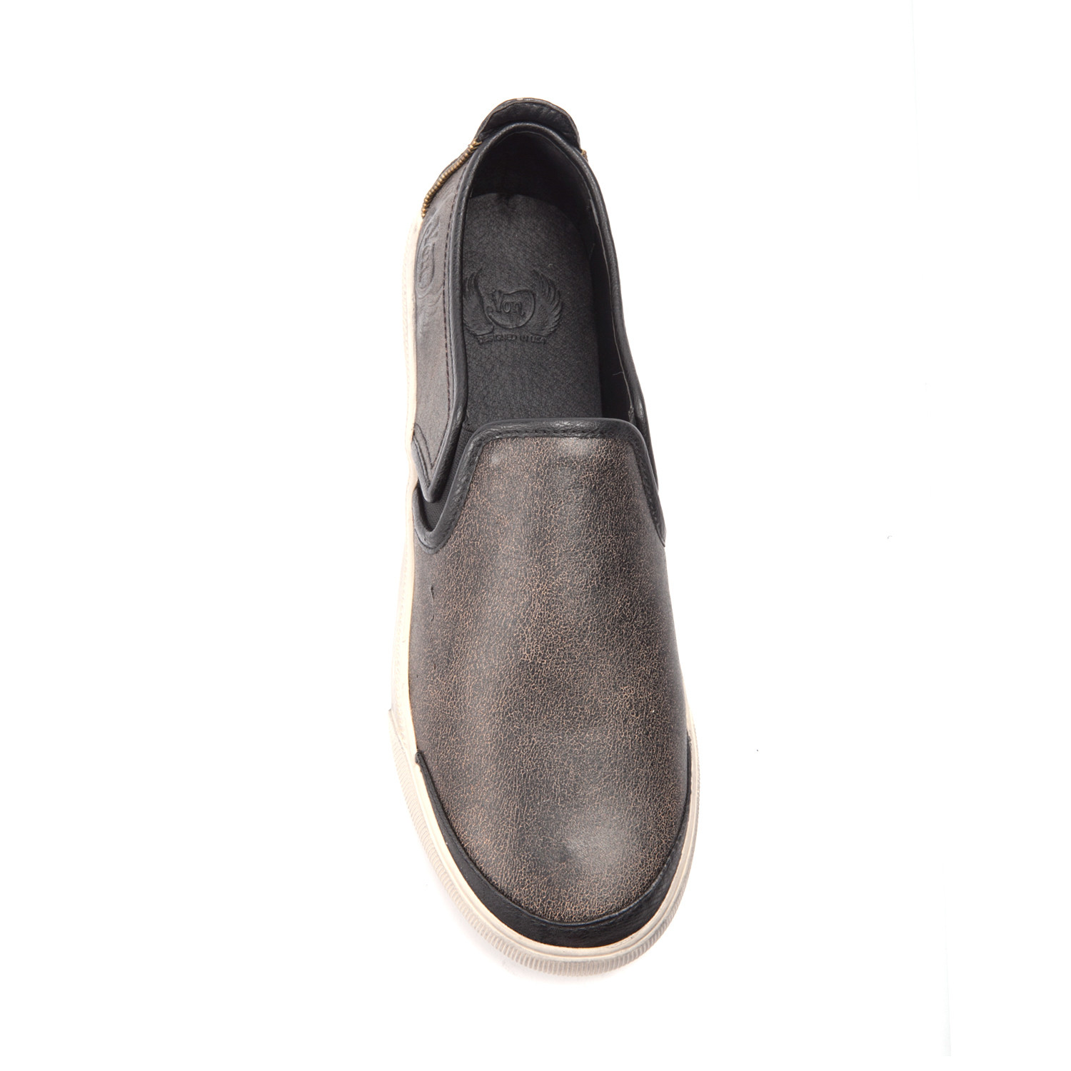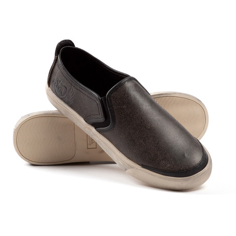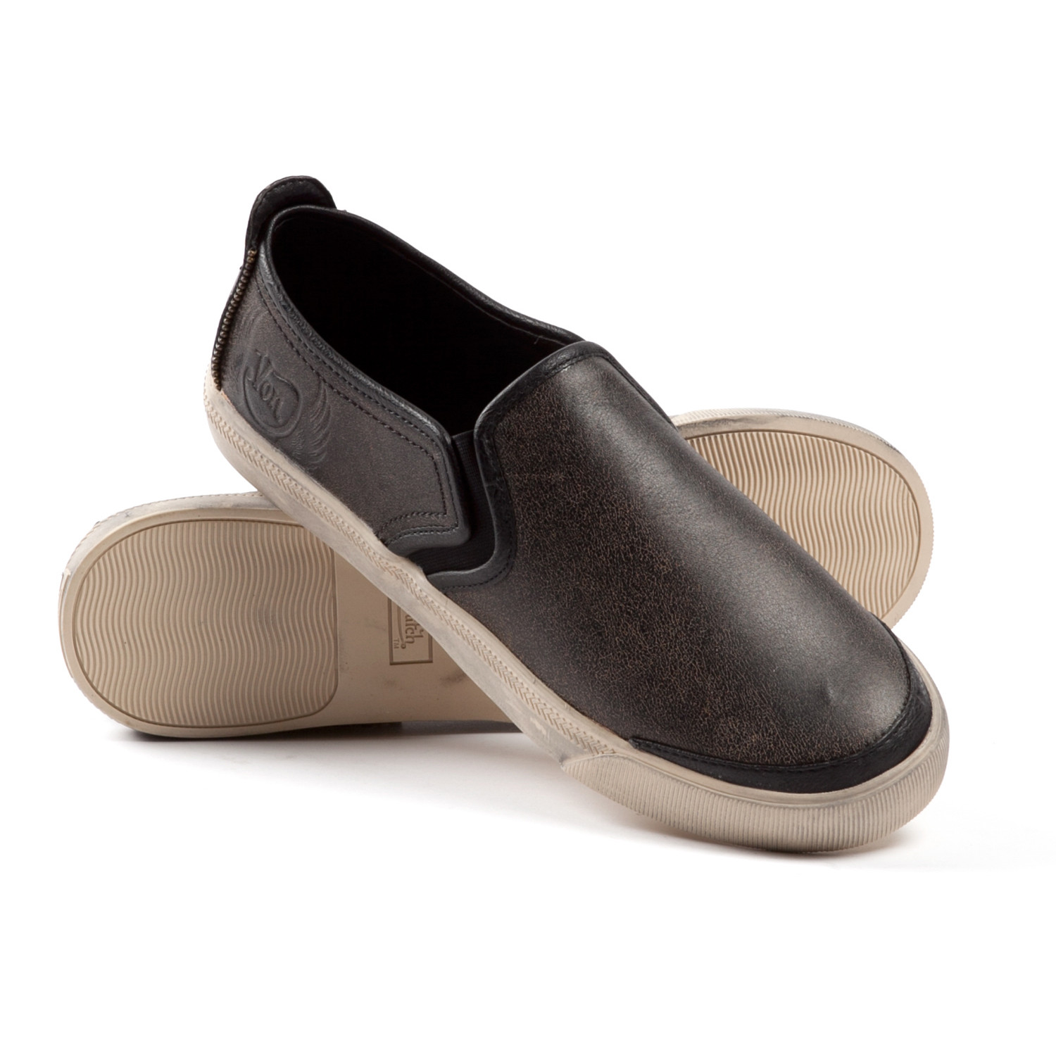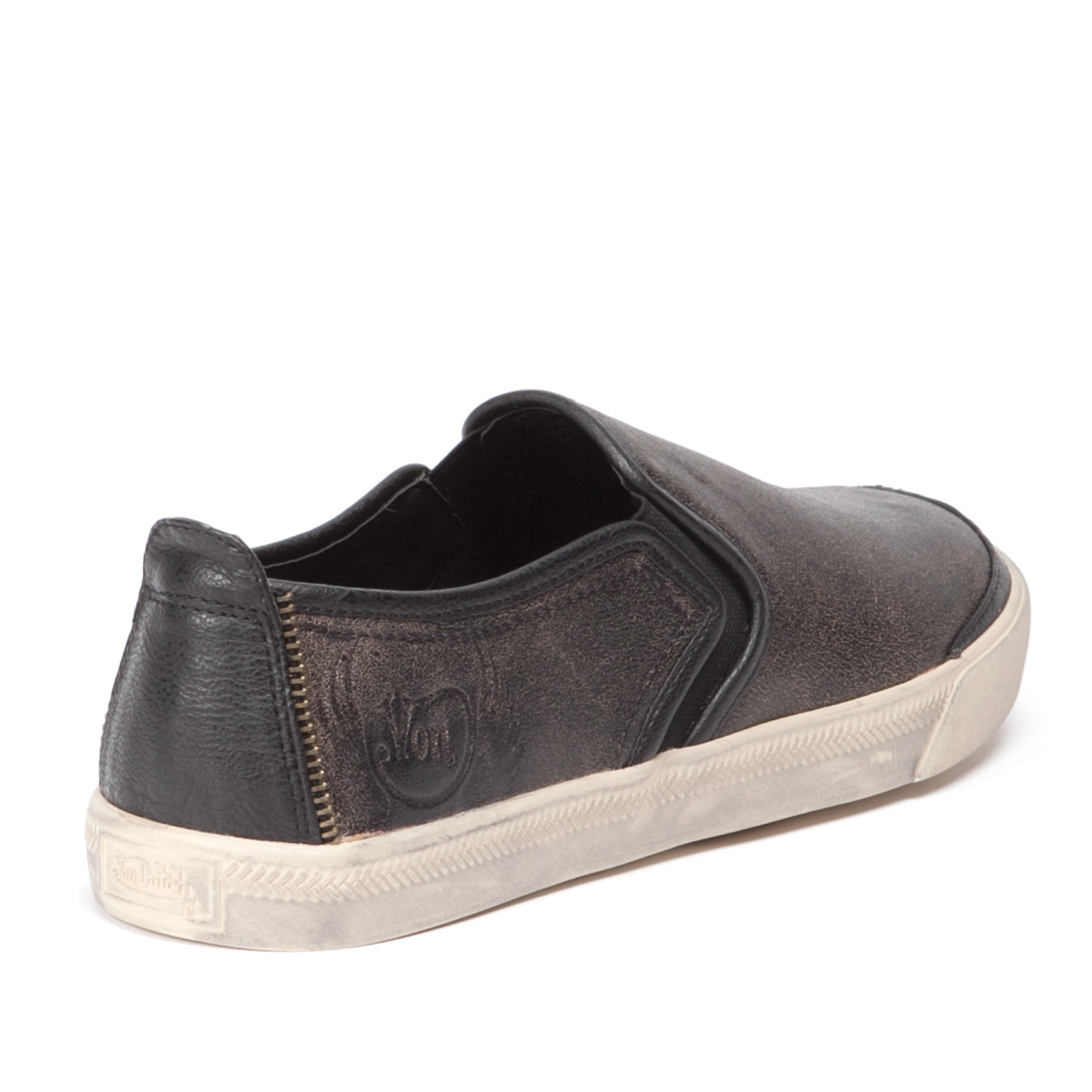 The Von Dutch Hit The Brakes Slip-Ons in Rusty Black perfectly balance upscale and laid back. Featuring a suede and leather-trimmed upper, a specially-contoured elastic, and a zipper-lined ankle cap and pull tab, you can wear them with a leather jacket or a blazer and be good to go.