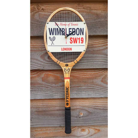— Real Wooden Tennis Racquet & Steel Wimbledon Road Sign