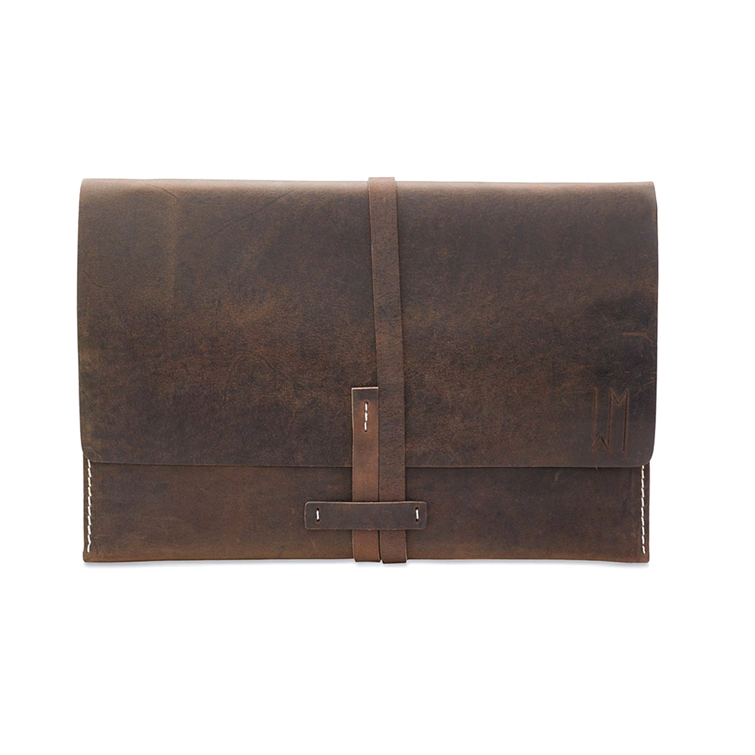 The Avery Sleeve was designed for the complete function and safety of a laptop, but it also makes the perfect portfolio for papers or artwork. The design is simple, yet protective, with waxed cotton stitching and leather strap closure.