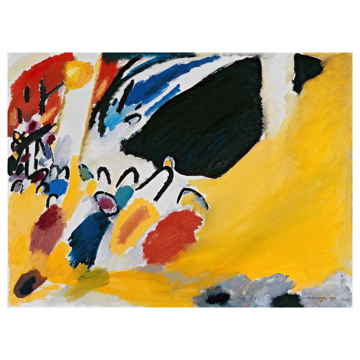 Wassily Kandinsky (1866-1944) was a Russian painter and art theorist, credited with painting one of the first recognized purely abstract works. Kandinsky's creation of abstract work followed a long period of development and maturation of intense thought based on his artistic experiences. He called this devotion to inner beauty, fervor of spirit, and spiritual desire an inner necessity; it was a central aspect of his art.