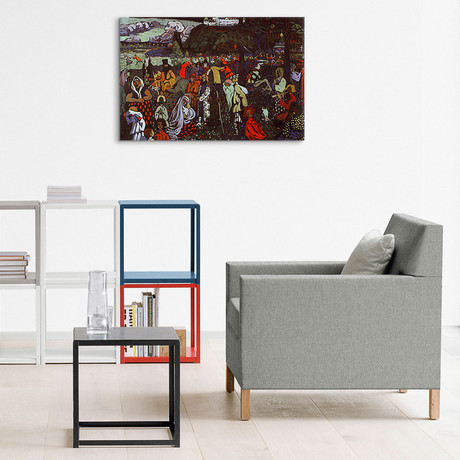 Wassily Kandinsky spearheaded the Abstract movement with his belief that colors have inherent qualities and movements, and that these colors can be used in lines and shapes to convey feelings outside of representational art. Faithfully reproduced on museum-quality cotton canvas, this legendary work of modern art is now available for you to to keep. Hang it anywhere that could use a kick of life and color, and keep a little reflection of history and creativity in your home.