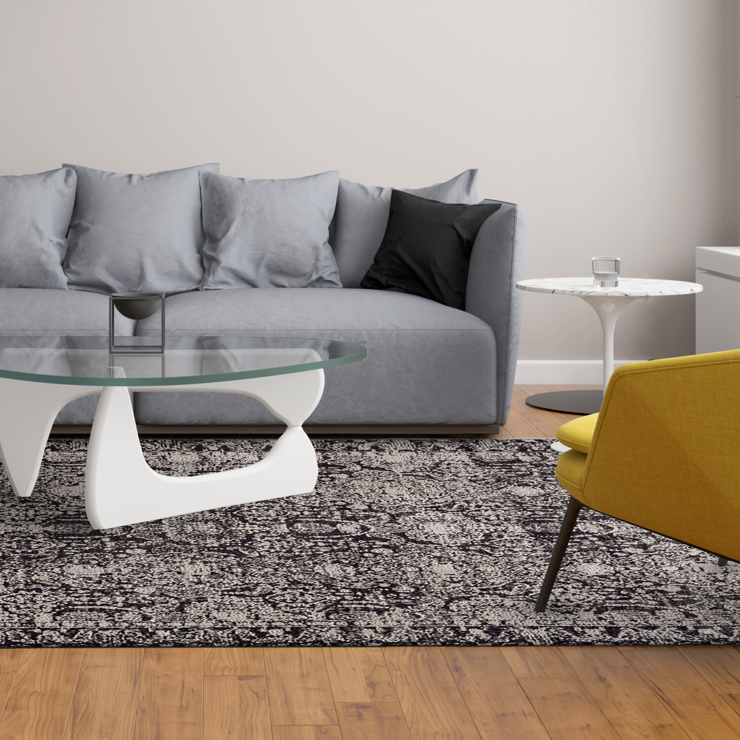 The Alexander Collection's unassuming palette offers a considerable canvas to showcase its alluring and pensive designs. Using a variety of grays charcoal ecru and subtle blue the dynamic shimmer from the high-low finishes translate to sheer elegance and glamour. Power-loomed with a new polypropylene yarn that mimics the ultra-soft texture and lavish sheen of viscose each design in the Alexander Collection is a striking piece that steals the spotlight.