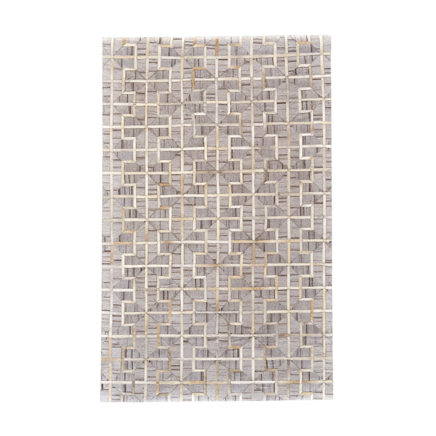 Rustic design meets modern artistry with the Canady Collection. Bold geometric patterns crafted from animal hide demand attention on design-friendly palettes like sand, silver and slate. Handmade with viscose and leather, each rug delivers visual appeal and textural interest to infuse any space with distinctive style and contemporary charm.