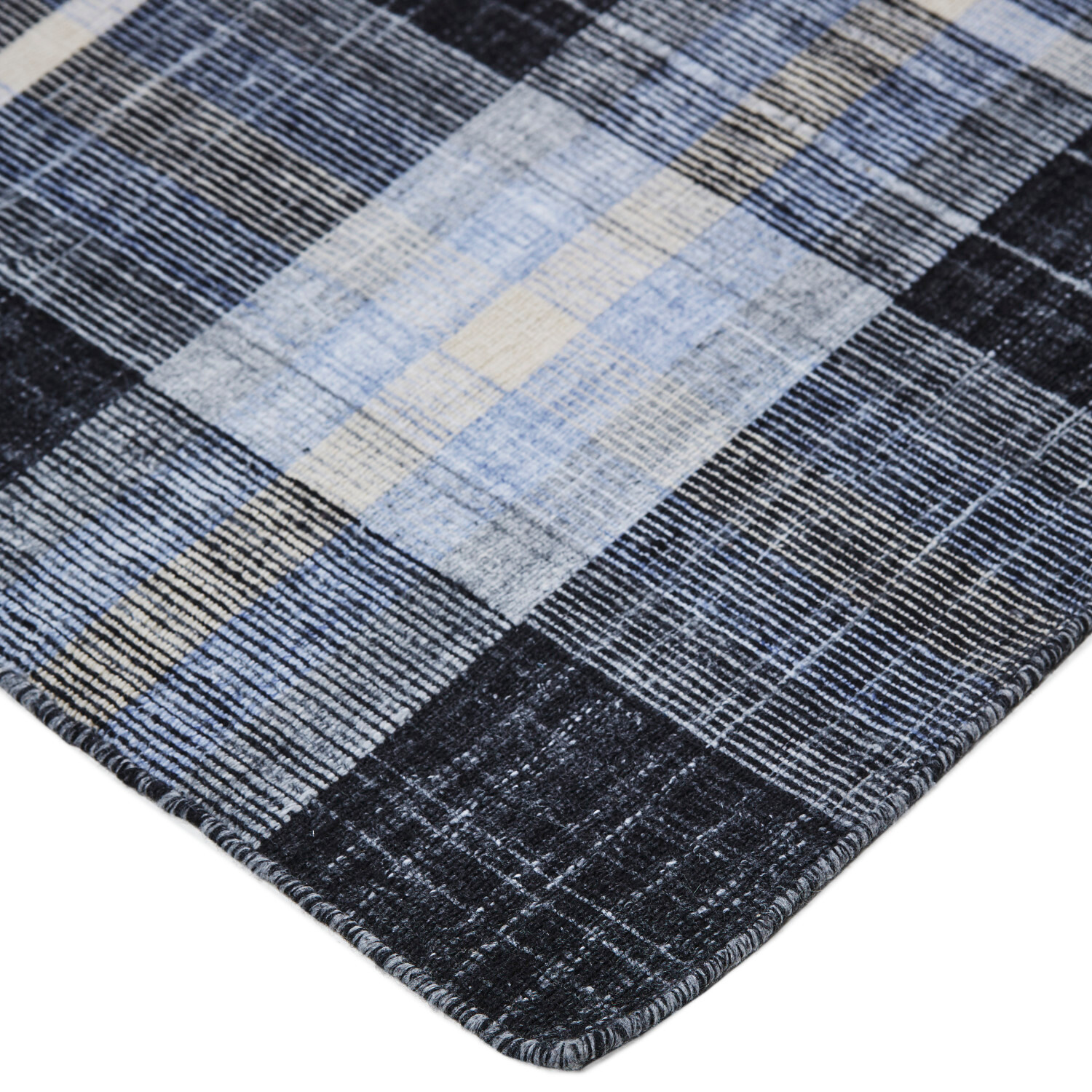 Classic plaid motifs are renewed in sophisticated and fresh color palettes in the Jens Collection. Handwoven of durable 100% PET fibers this outdoor-friendly collection is upcycled from plastic water bottles for sustainable style that's easy to decorate with.