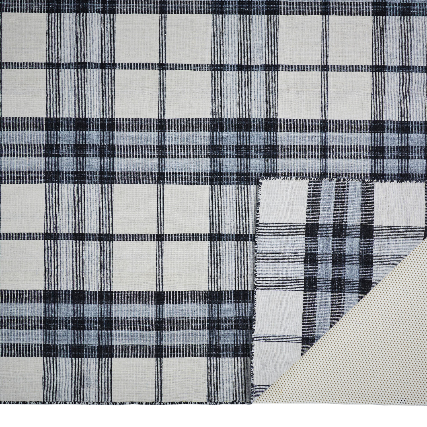 Jens Eco-Friendly PET Dhurrie // Navy + Sky Blue + Black