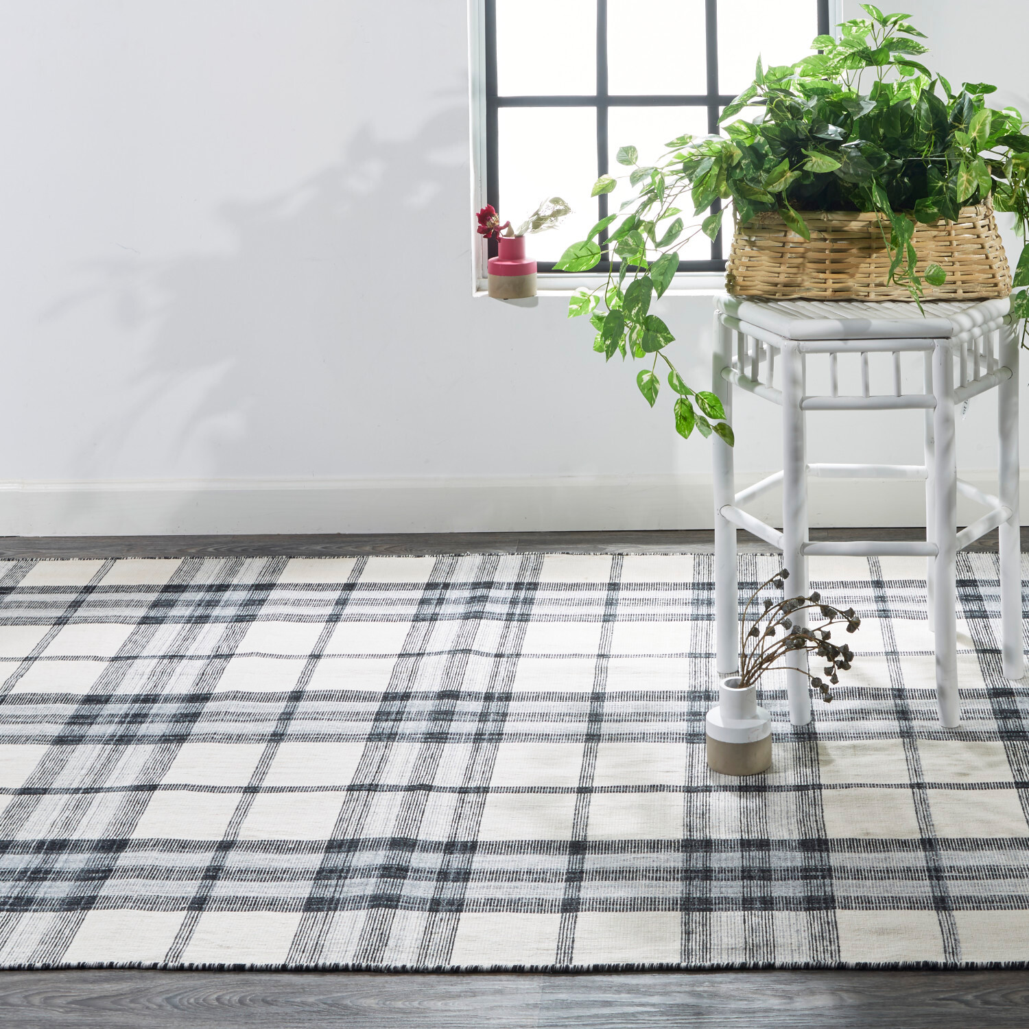 Classic plaid motifs are renewed in sophisticated and fresh color palettes in the Jens Collection. Handwoven of durable 100% PET fibers this outdoor-friendly collection is upcycled from plastic water bottles for sustainable style that's easy to decorate with.