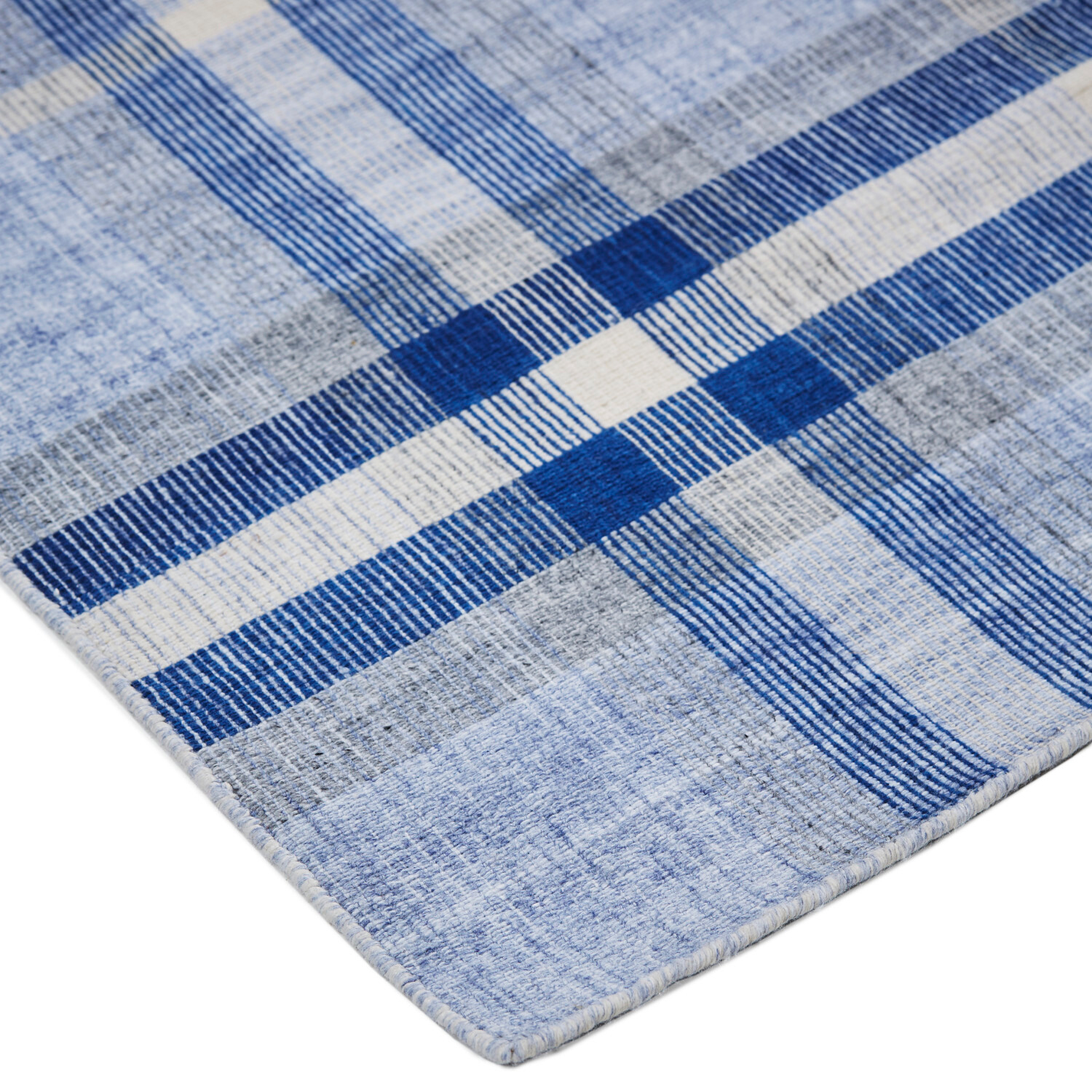 Classic plaid motifs are renewed in sophisticated and fresh color palettes in the Jens Collection. Handwoven of durable 100% PET fibers this outdoor-friendly collection is upcycled from plastic water bottles for sustainable style that's easy to decorate with.