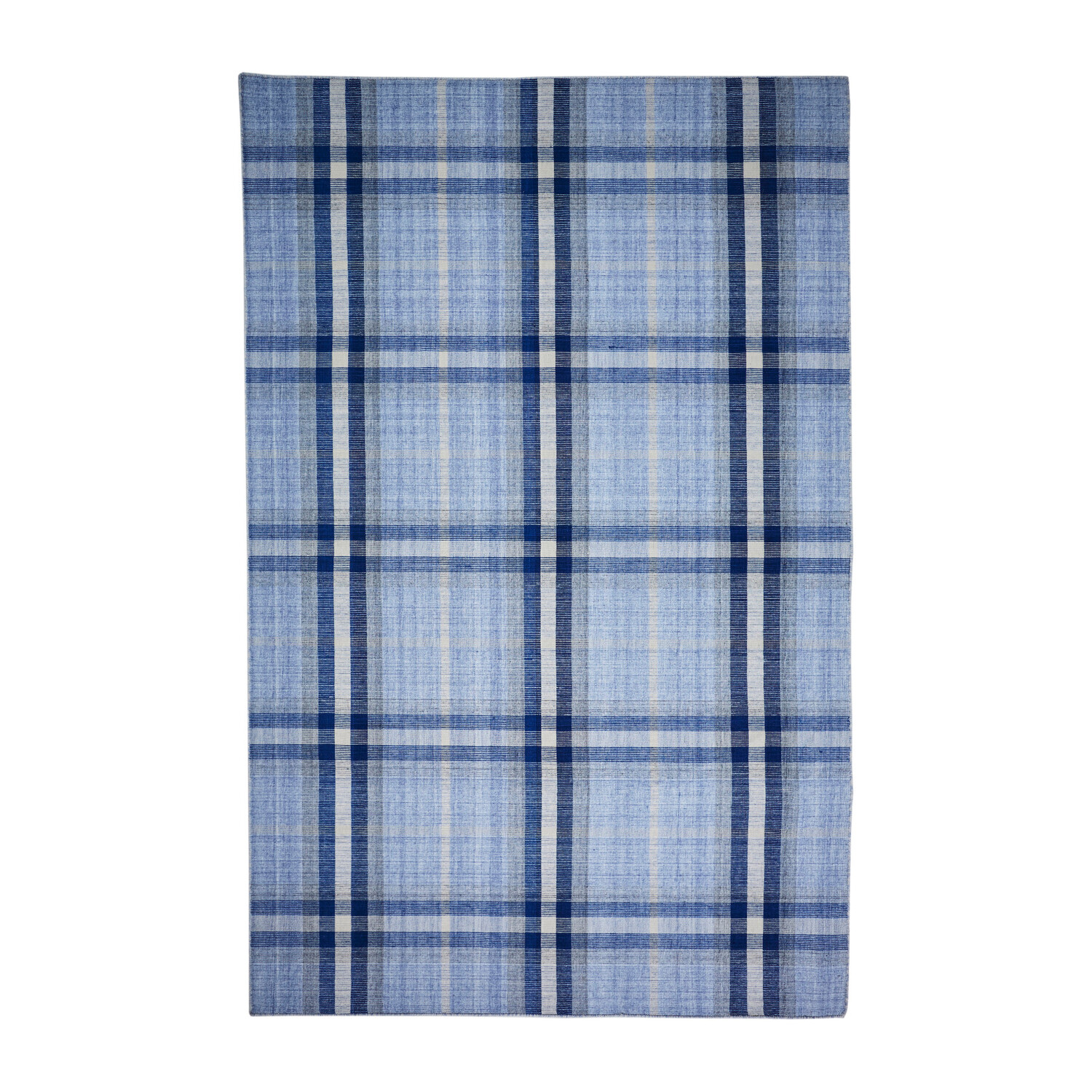 Jens Eco-Friendly PET Dhurrie // Navy + Sky Blue + White