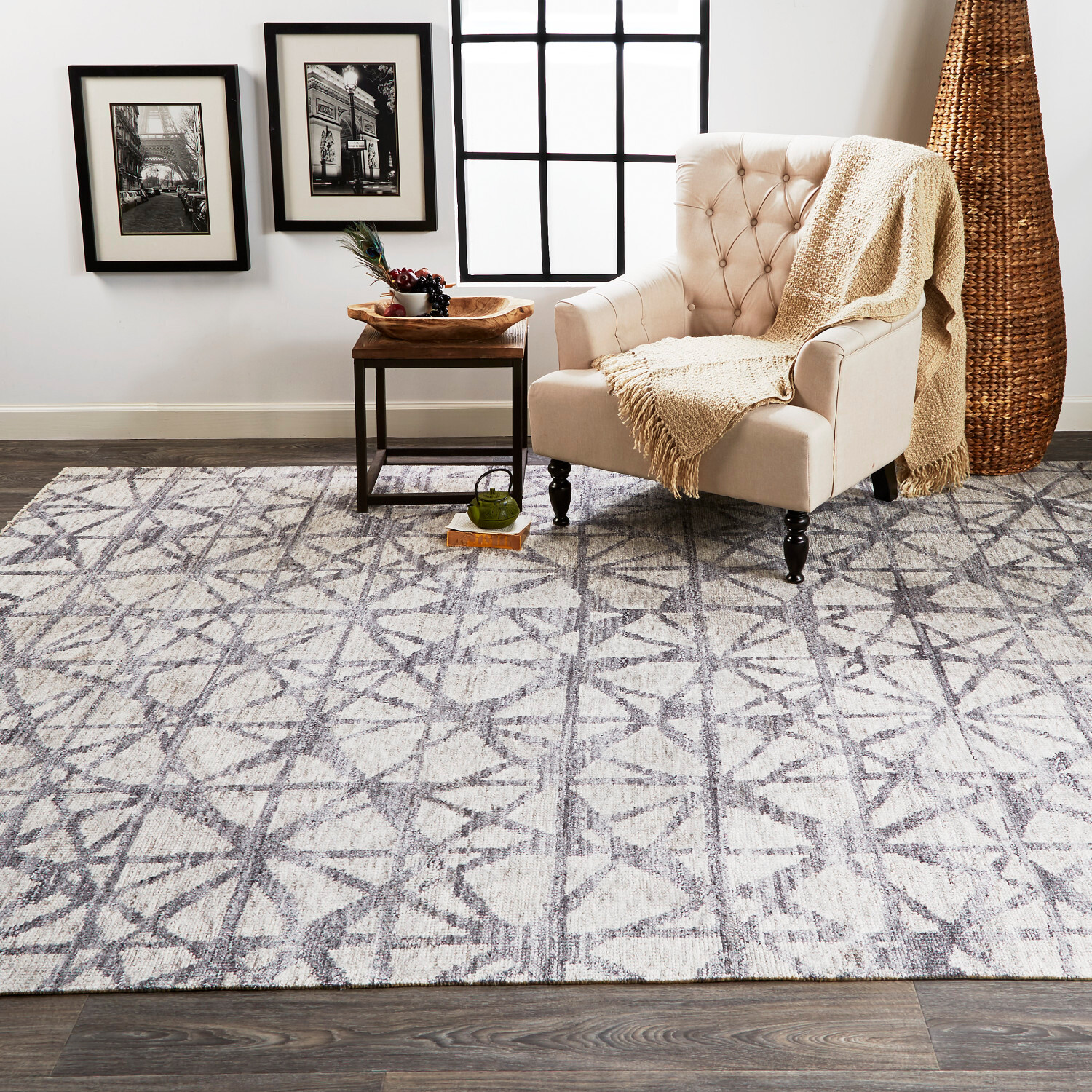 Hand knotted in a premium wool pile the dramatic Norris Collection features graphic prints in approachable inky charcoals and earthy grays. The tone-on-tone monochromatic color palette is easy-to-decorate with as bold motifs instantly create a striking centerpiece for farmhouse eclectic and transitional home decor styles.