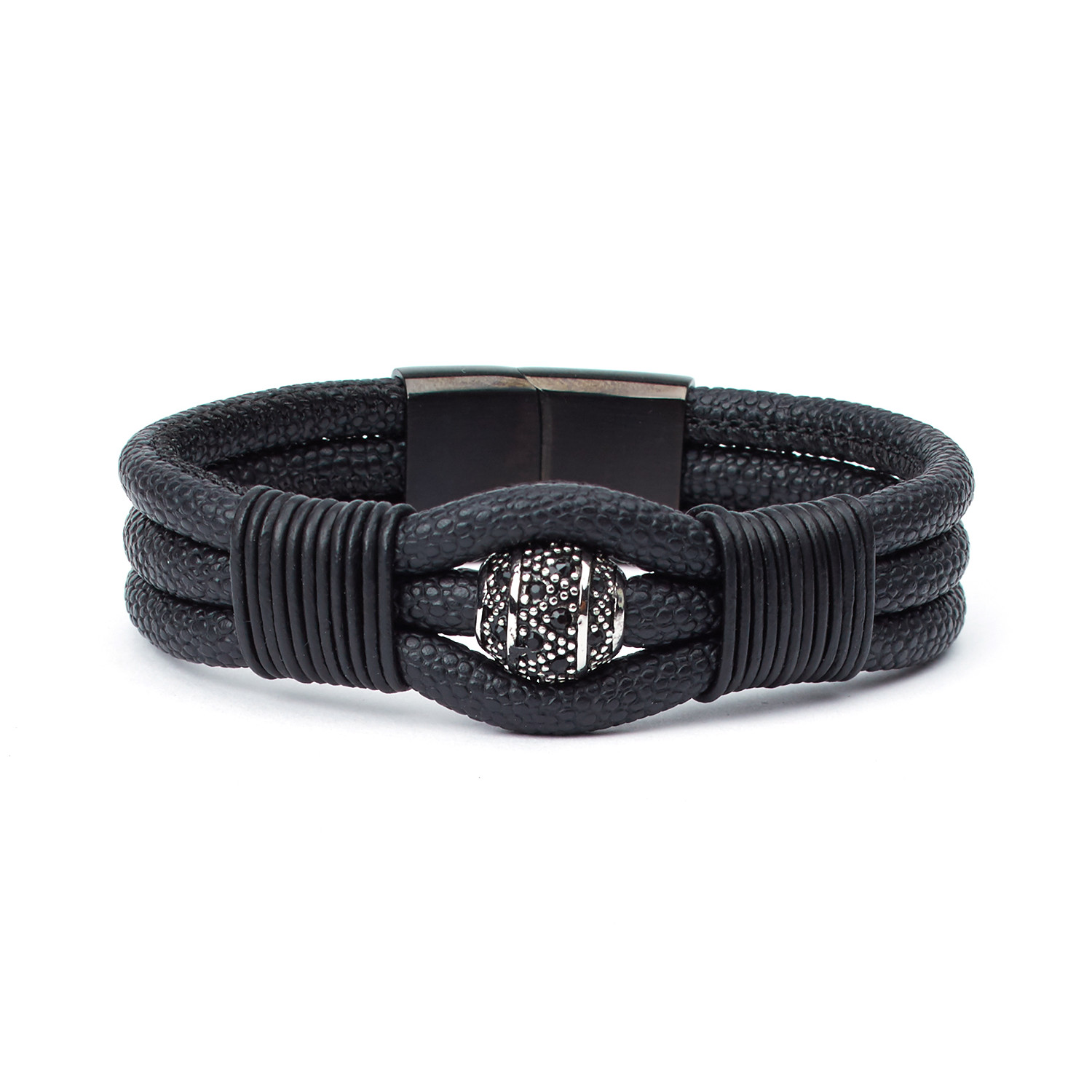 Black Sea Pebbled Leather Cord Bracelet // Black