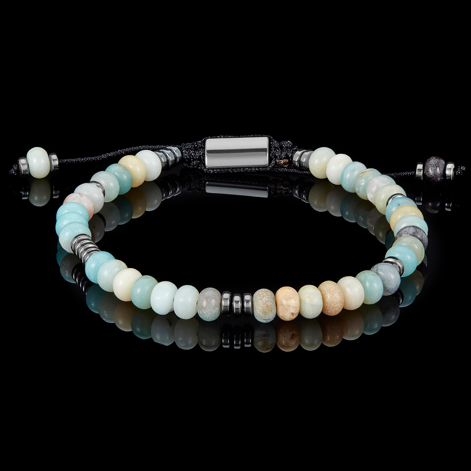 Amazonite Stone + Hematite Adjustable Bracelet // 8"