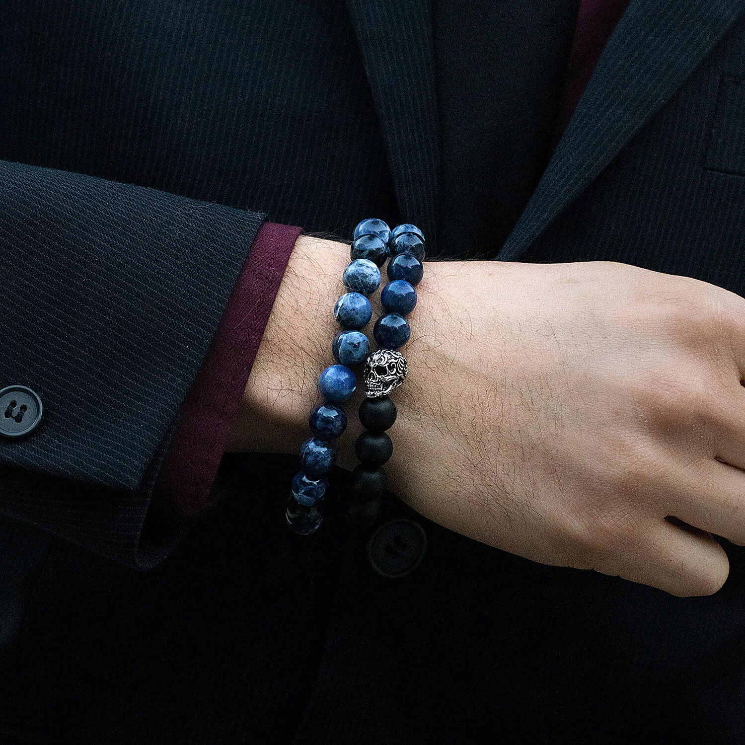 Sodalite + Matte Onyx Stone Stretch Bracelet // 8.25"