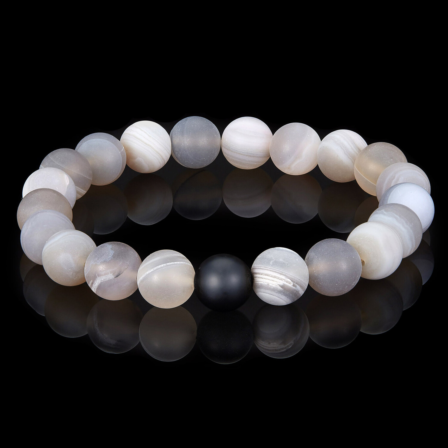 Gray Matte Agate + Matte Onyx Stone Stretch Bracelet // 8.25"
