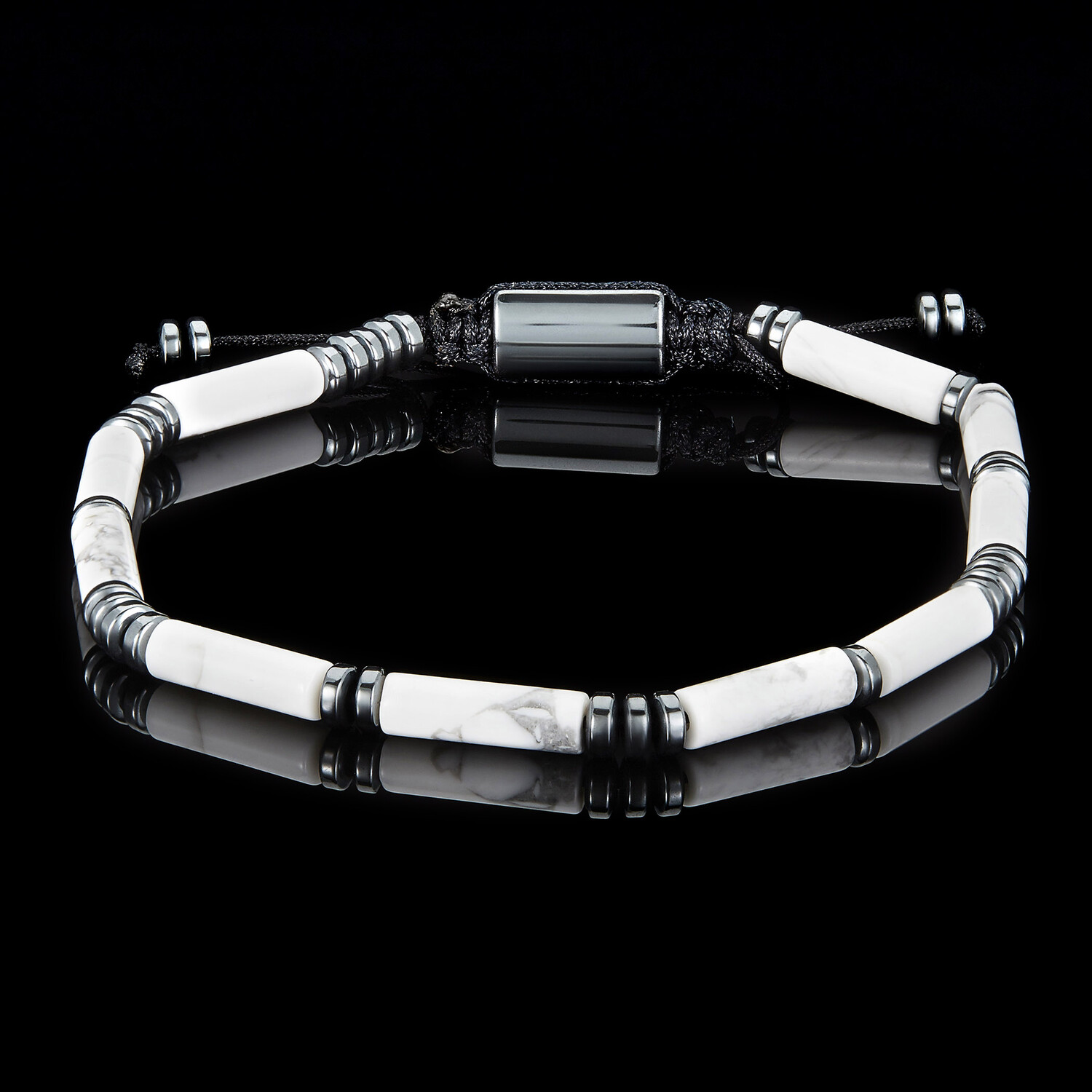 Howlite + Hematite Stone Adjustable Bracelet // 9"