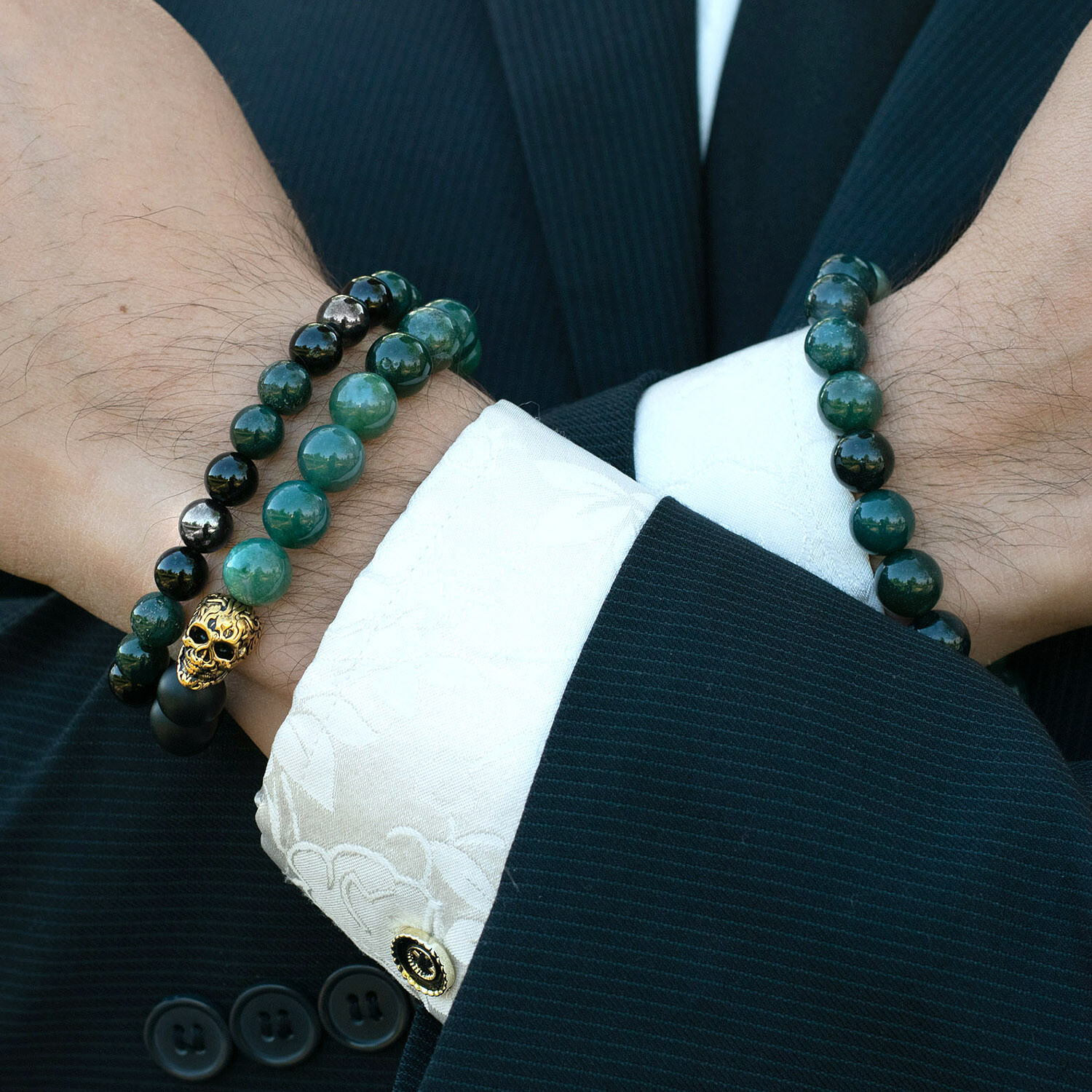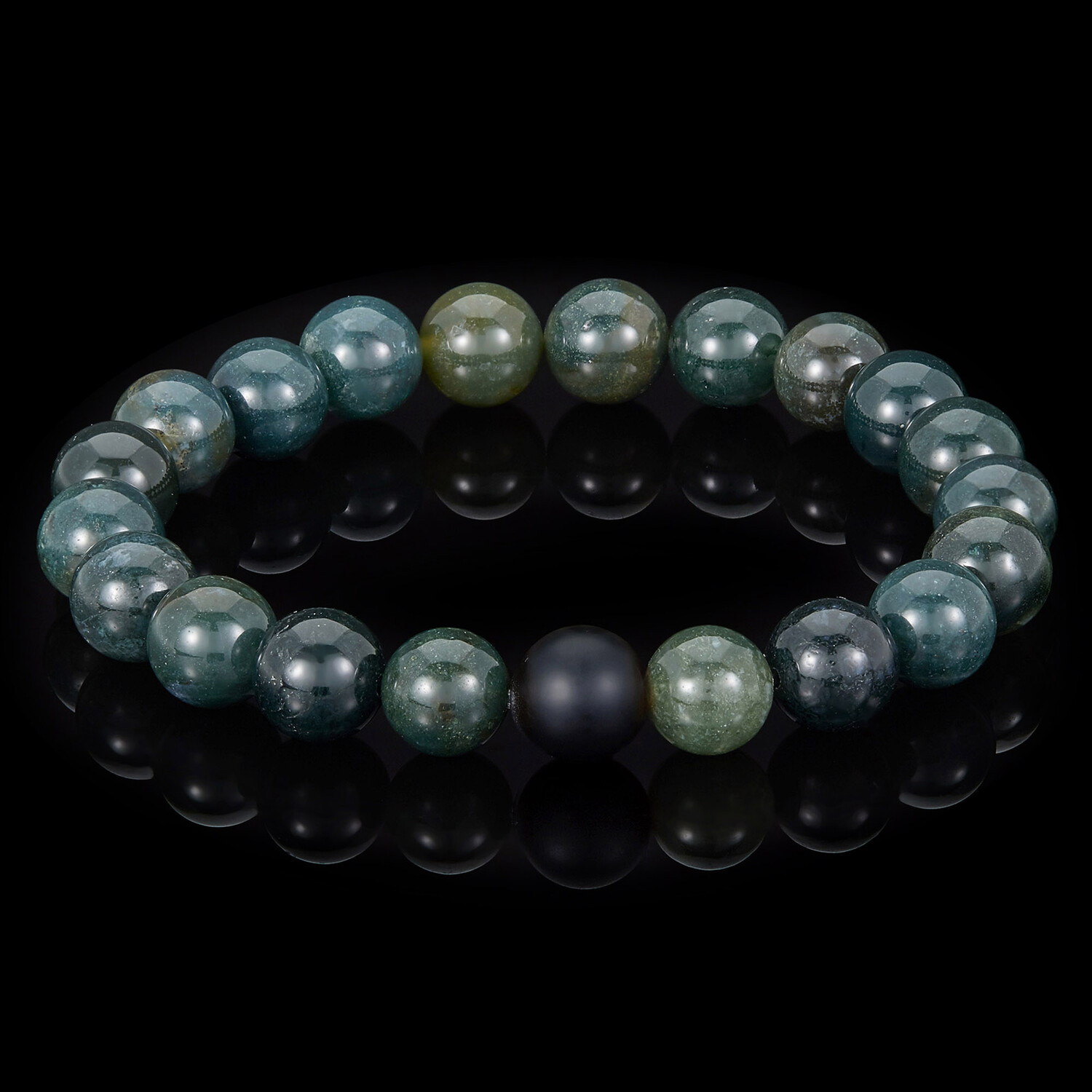 Moss Agate + Matte Onyx Stone Stretch Bracelet // 8.25"