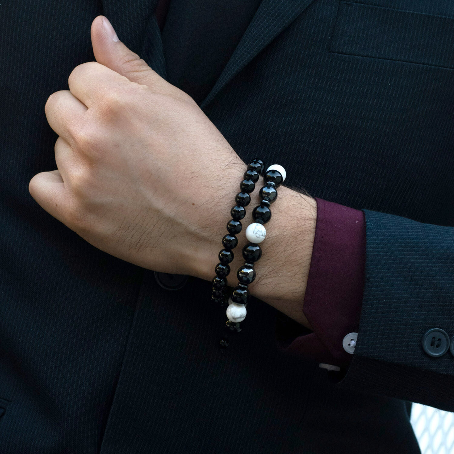 Onyx Stone Adjustable Bead Bracelet // 8"