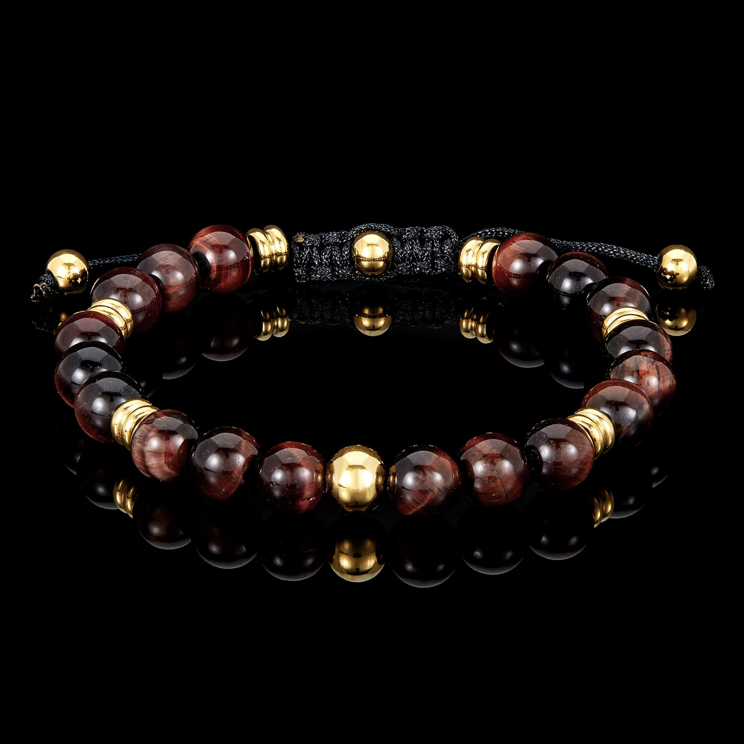 Red Tiger Eye Stone + Gold Plated Stainless Steel Adjustable Bracelet // 8"
