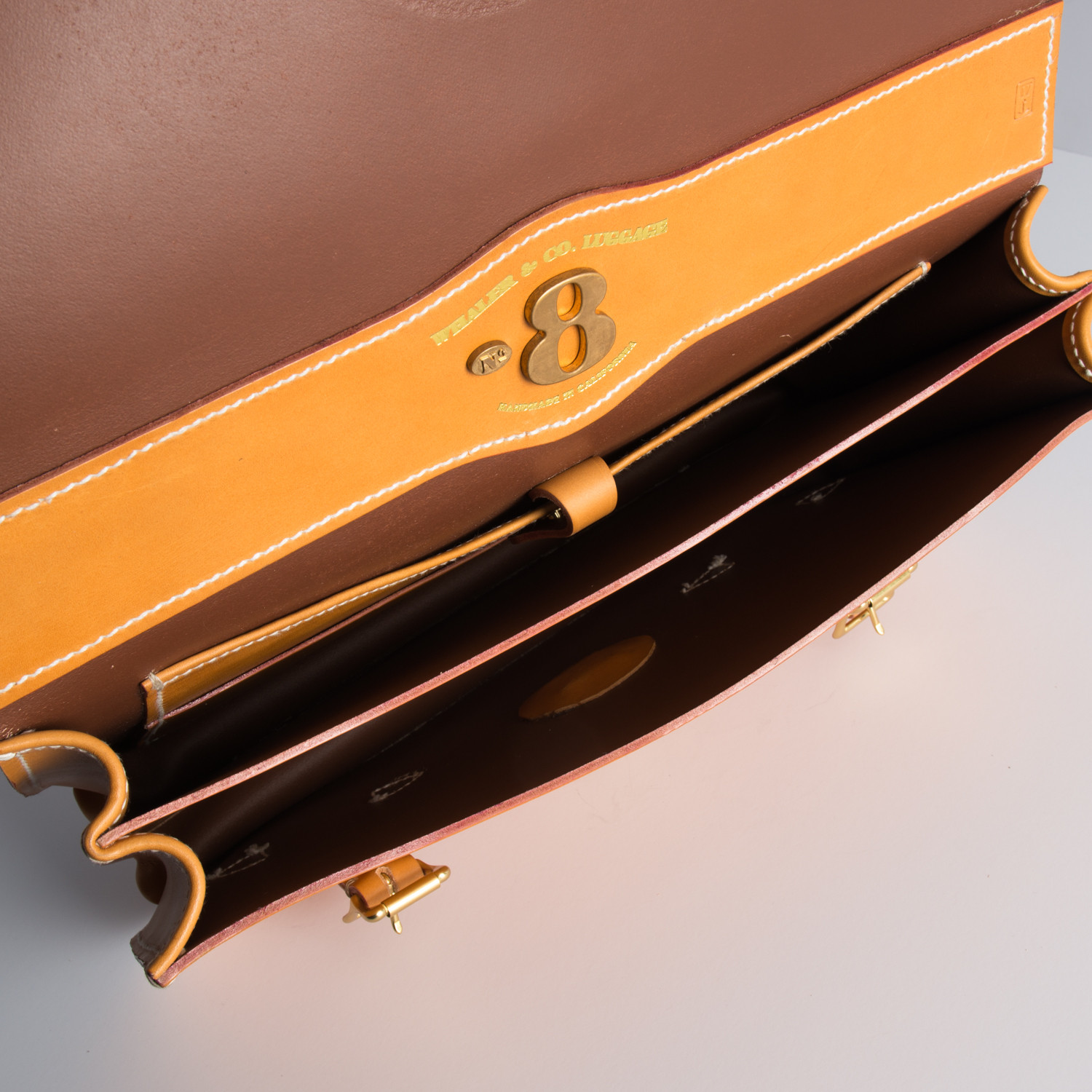 Individually hand-stitched to achieve an organic and perfect look, the No. 8 Briefcase will do more to boost your professional look than a new resume. Solid brass hardware is naturally beautiful and durable, built beautifully to last.