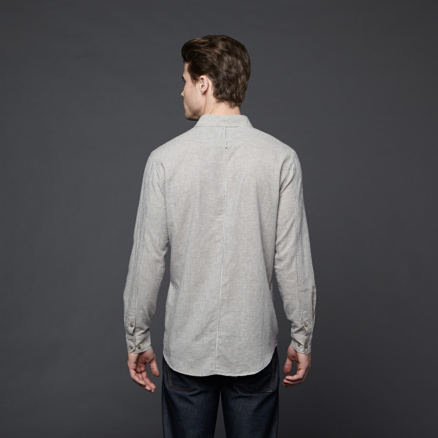 The Stuart Shirt is a step above your usual button down. Made from a fine cotton-linen blend, it features a custom bar-tacked pocket, custom buttons, and adjustable cuffs for a rugged-but-smart look perfect for stylish travelers.