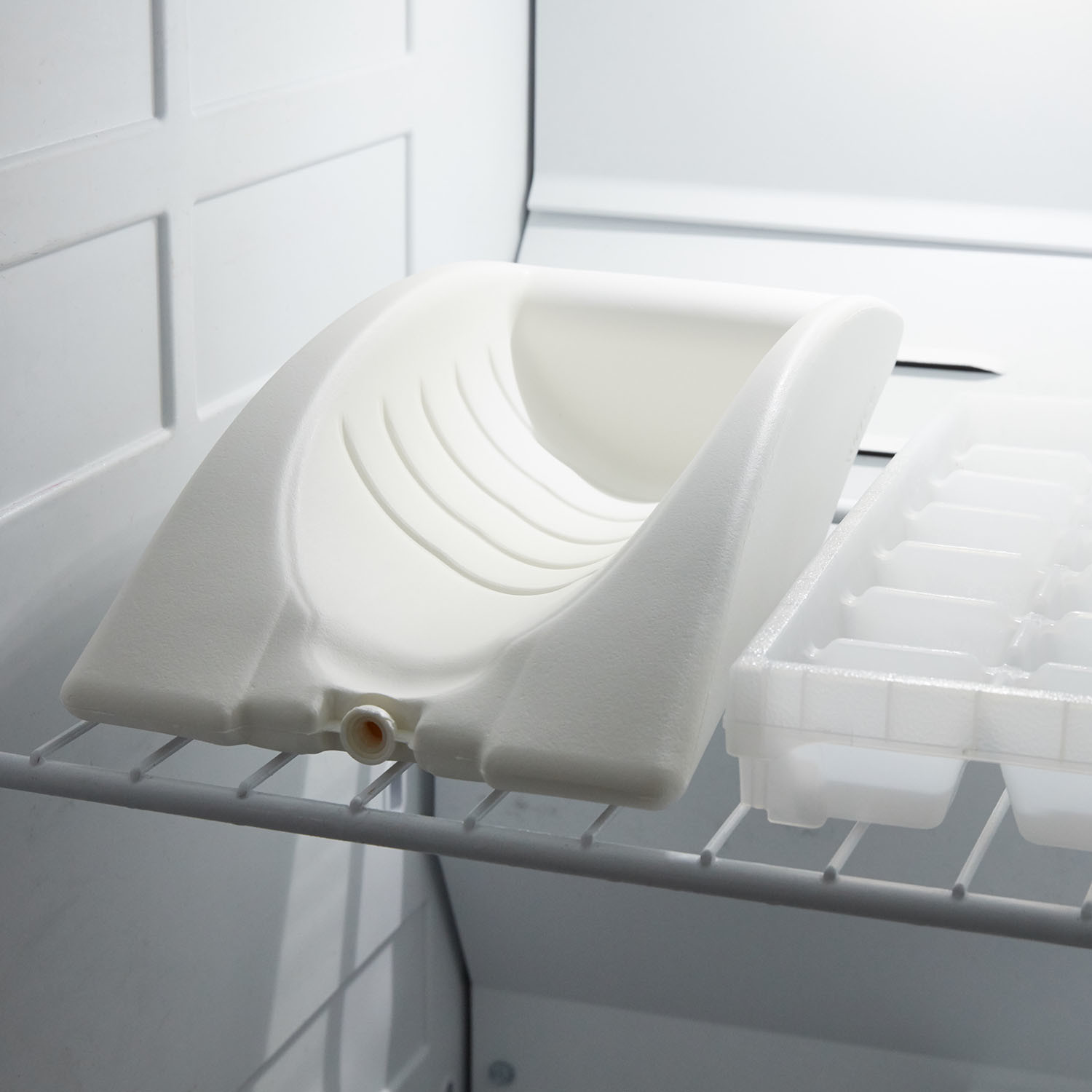 It's made of conductive plastic, so all you have to do is keep the interior cooling pocket in the freezer. When it's time to chill your wine, just remove the pocket, slide it into the matching chassis, and place the bottle inside. It will get cold fast, and look good doing it, with no need for wet, drippy ice, electricity, or extra effort.
