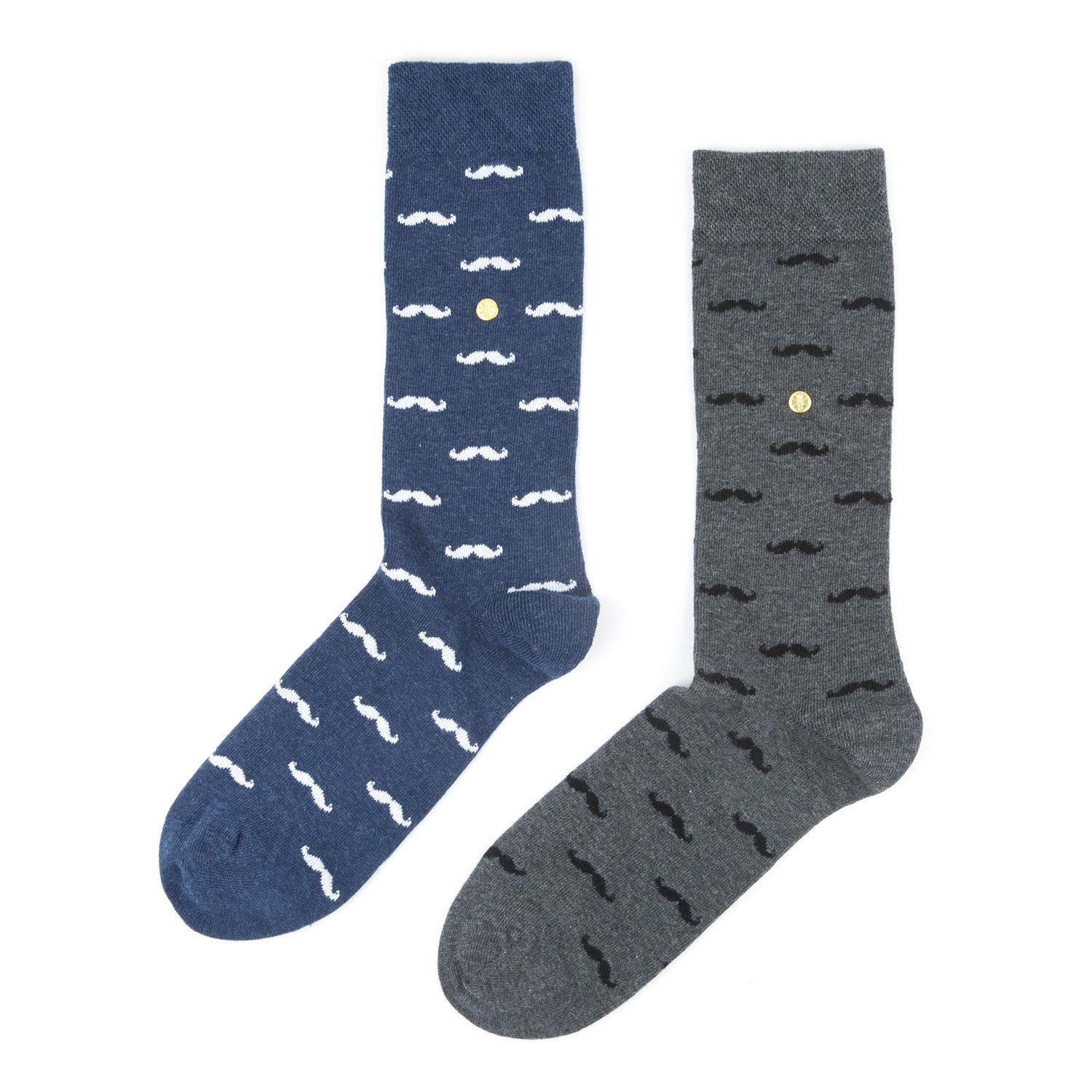Mustache Calf Sock // Grey + Blue // Set Of 2