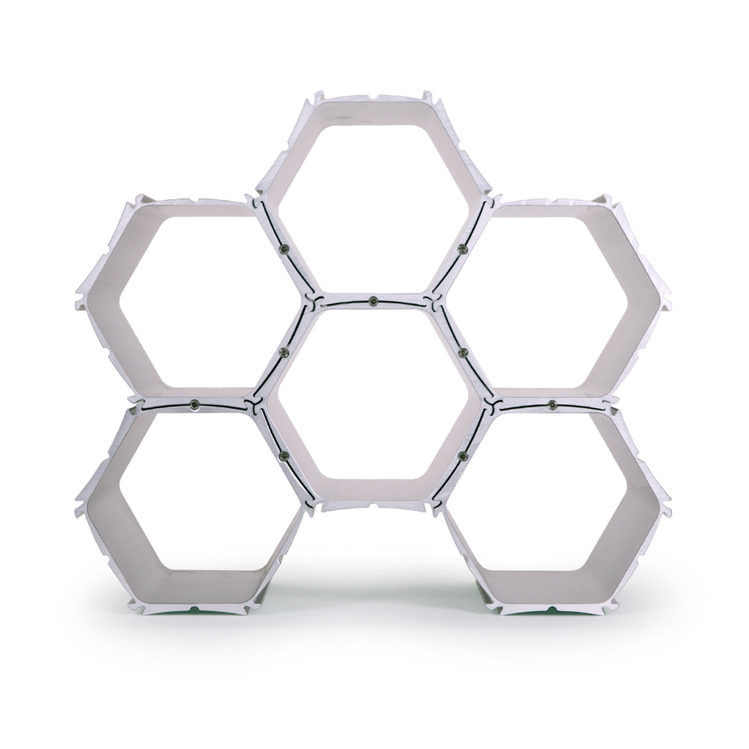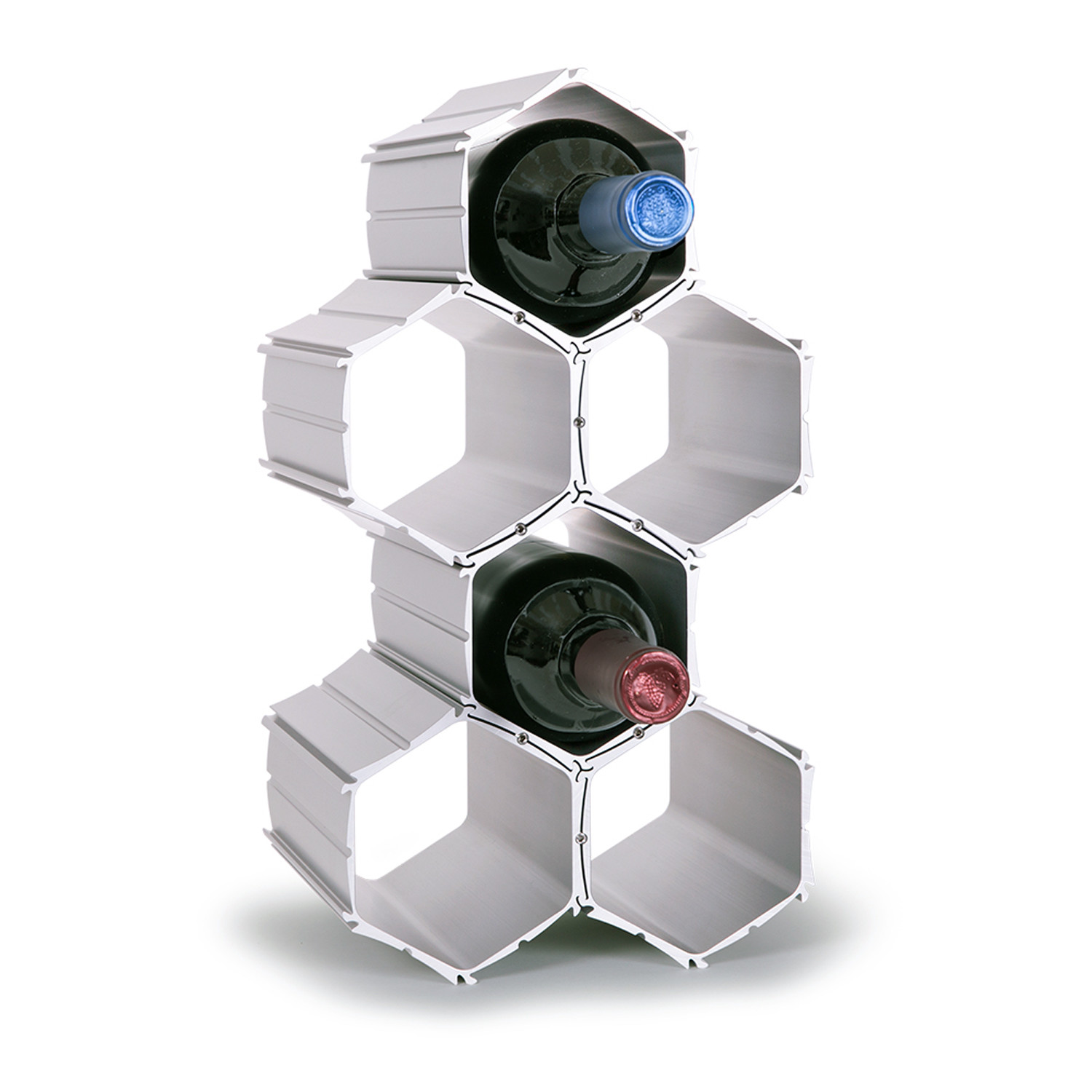 Handmade in USA of anodized aluminum, WineHive's modular modern design is fully customizable to fit your space in style. WineHive securely holds 6 or more bottles horizontally to keep their corks moist, and is infinitely expandable to grow with your wine collection. Finished in a beautiful satin anodize to modernize your kitchen or bar, it makes the perfect gift.