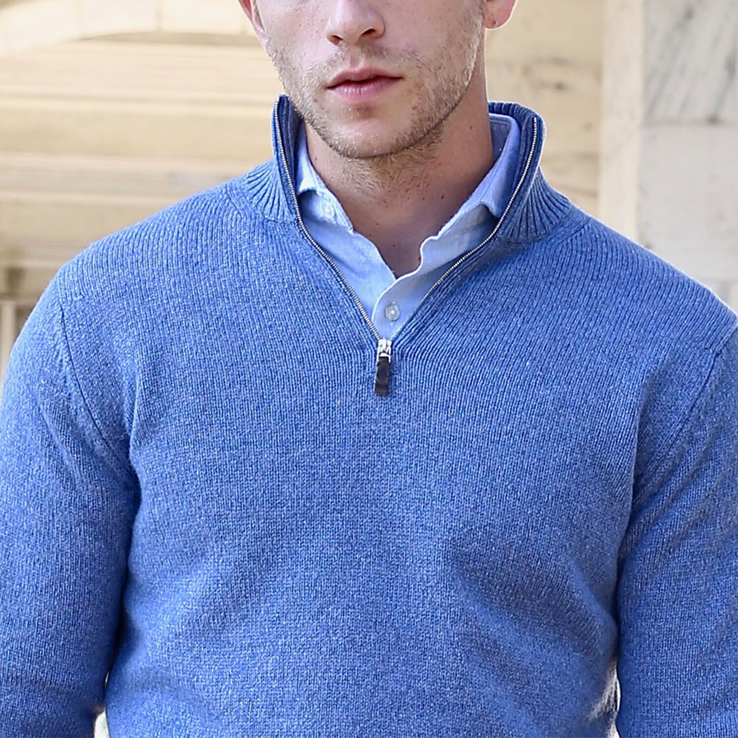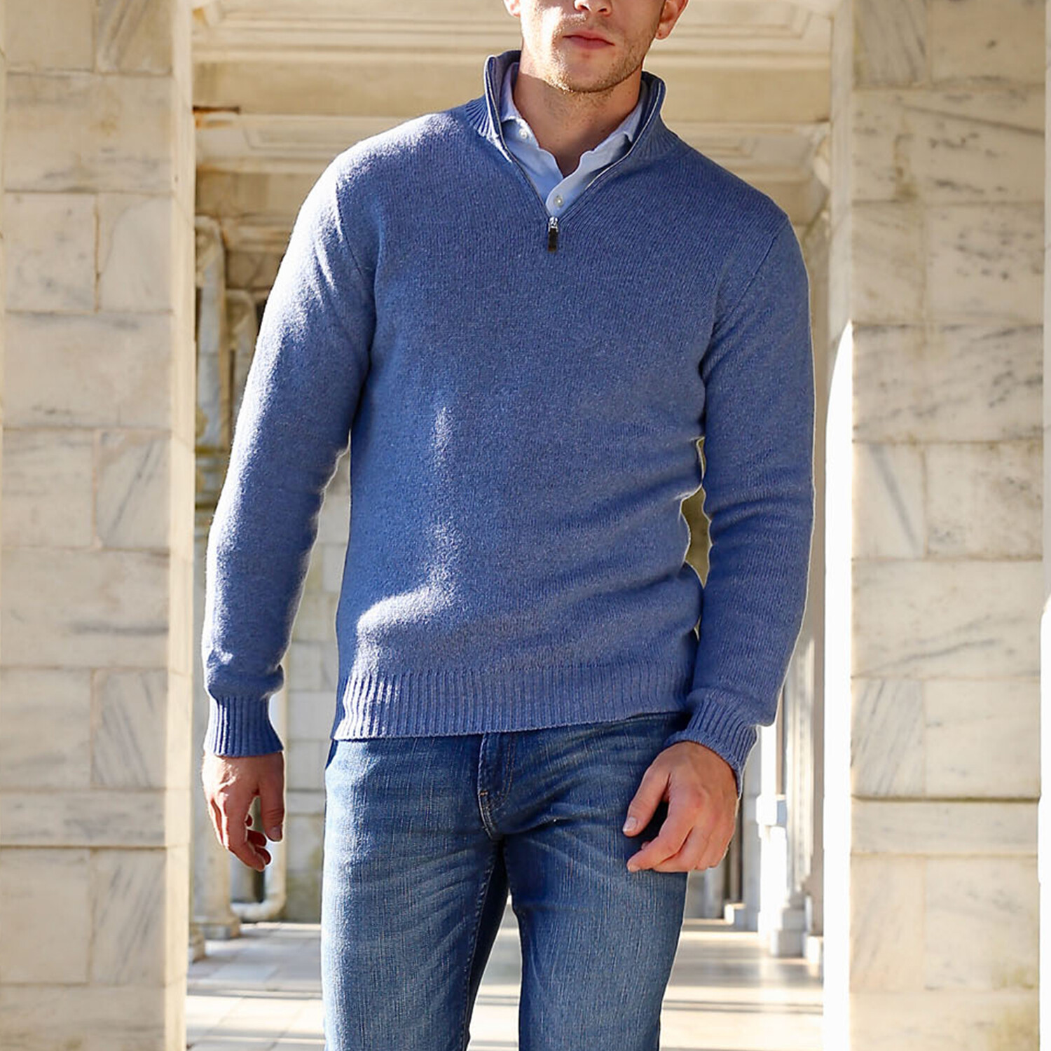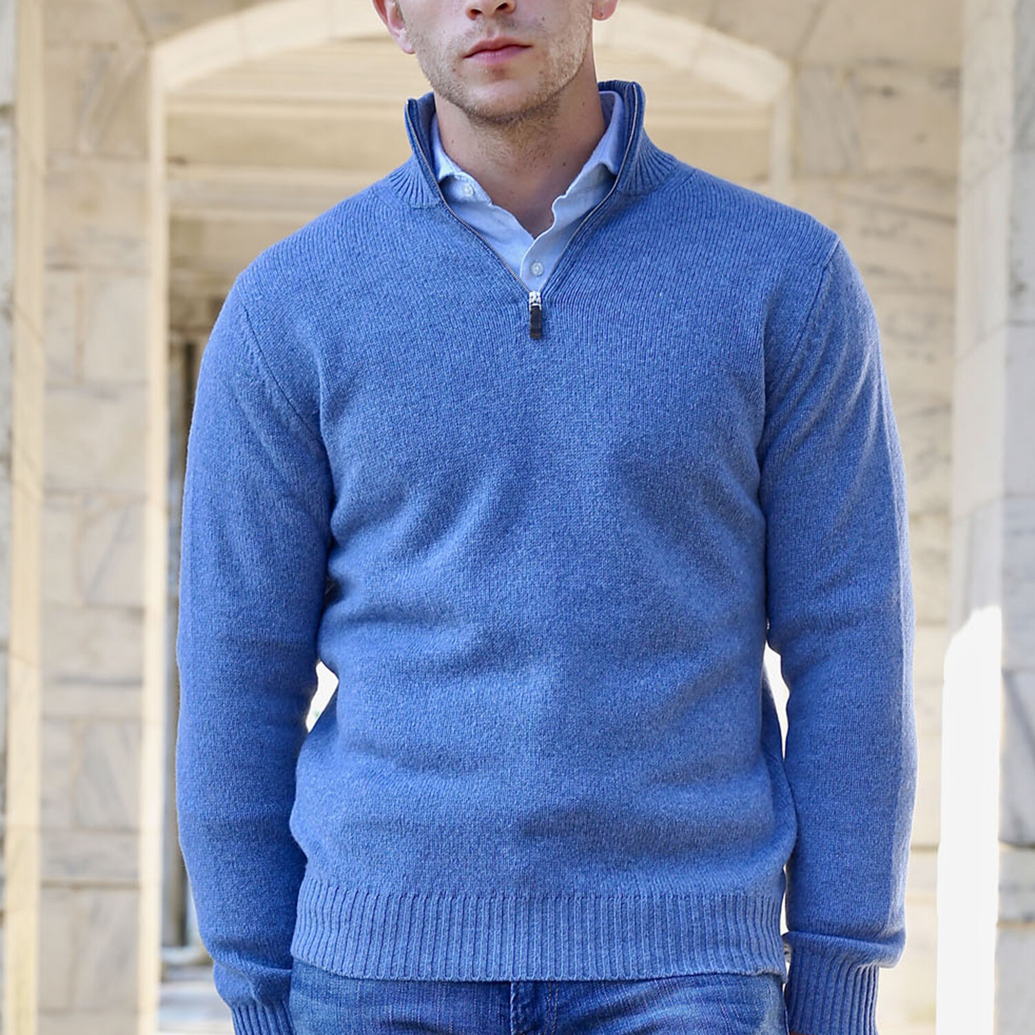 Lambswool Quarter-Zip Pullover Sweater // Light Blue