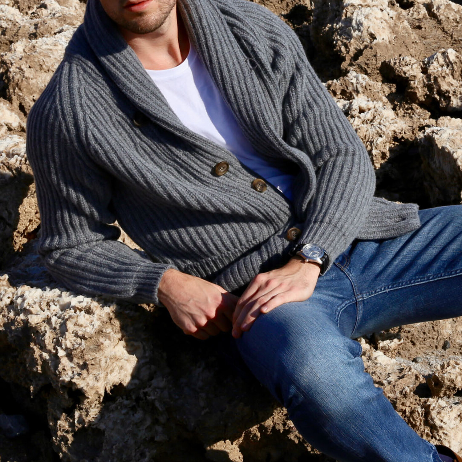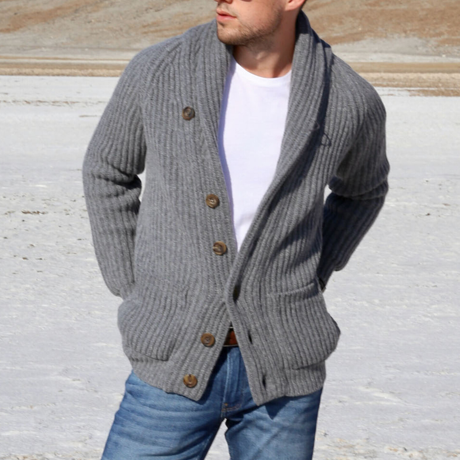 Lambswool Shawl Collar Cardigan // Gray