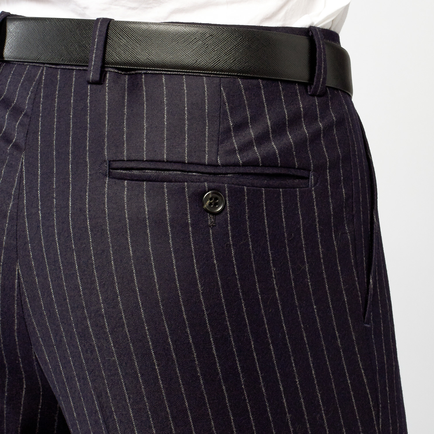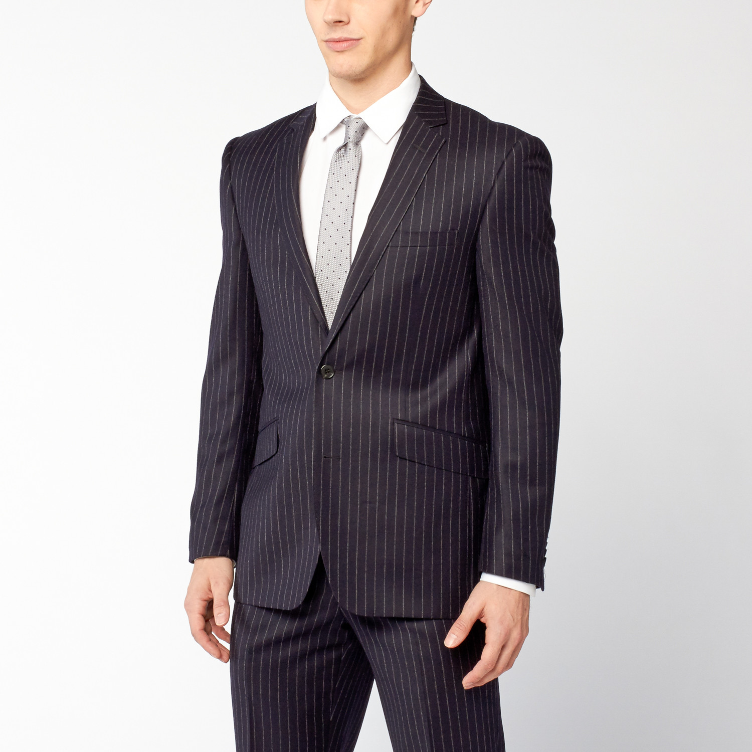 This 2 Piece Slim Fit Suit is all you'll need for your work wardrobe, and will provide you with the separate blazer and pant to supplement the rest of your look. Done in a black pinstriped wool with angled waist pockets, you'll love how dapper it makes you look — and feel.