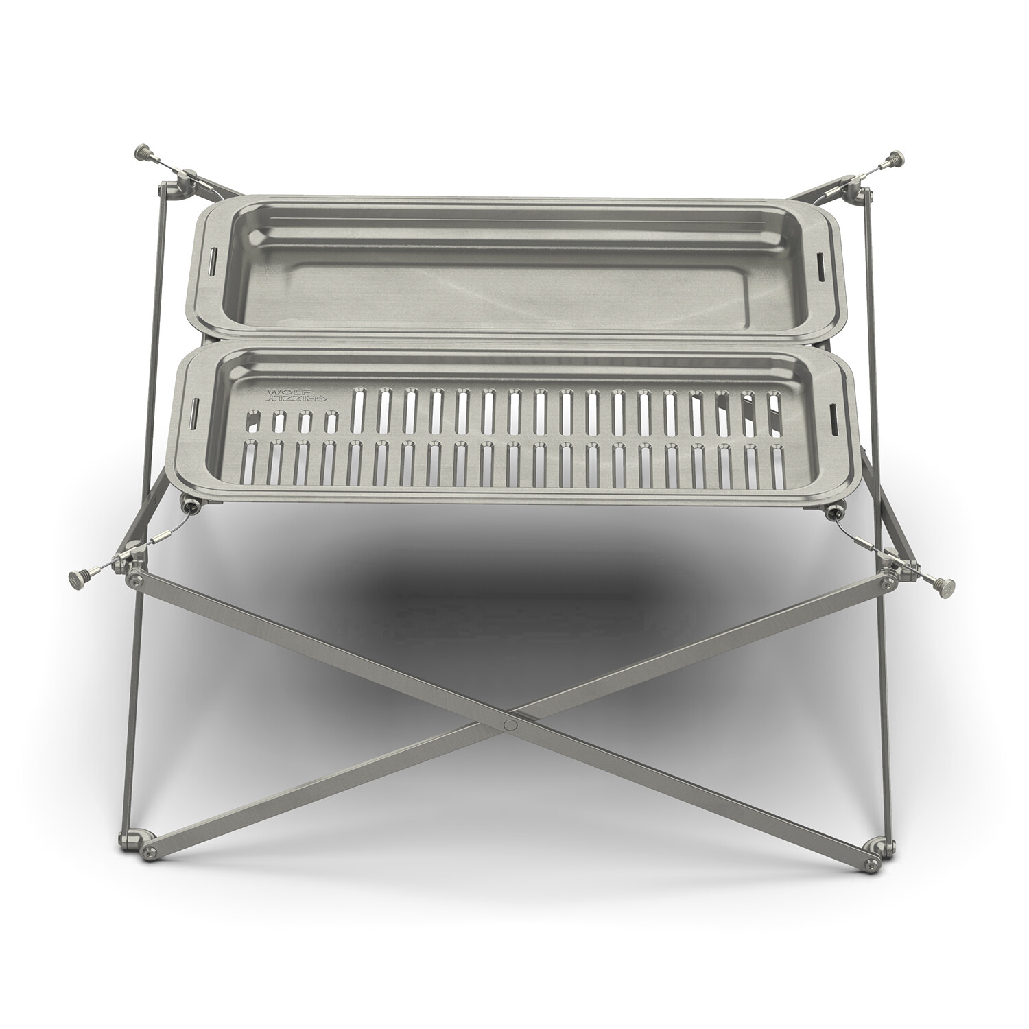 This nine piece Cook Set transforms your WG Grill into a multi-surface cooking platform. The Cook Set rail system connects to the Grill frame, letting you mix & match cooking surfaces for maximum versatility. Mix and match cookware for maximum versatility. Pancakes, stir fry, pasta, soups and stews - the possibilities are endless. Place the griddle under the hibachi as a grease-catcher for bacon or use the hibachi as a steamer for seafood when placed on top of the 2L Pot.