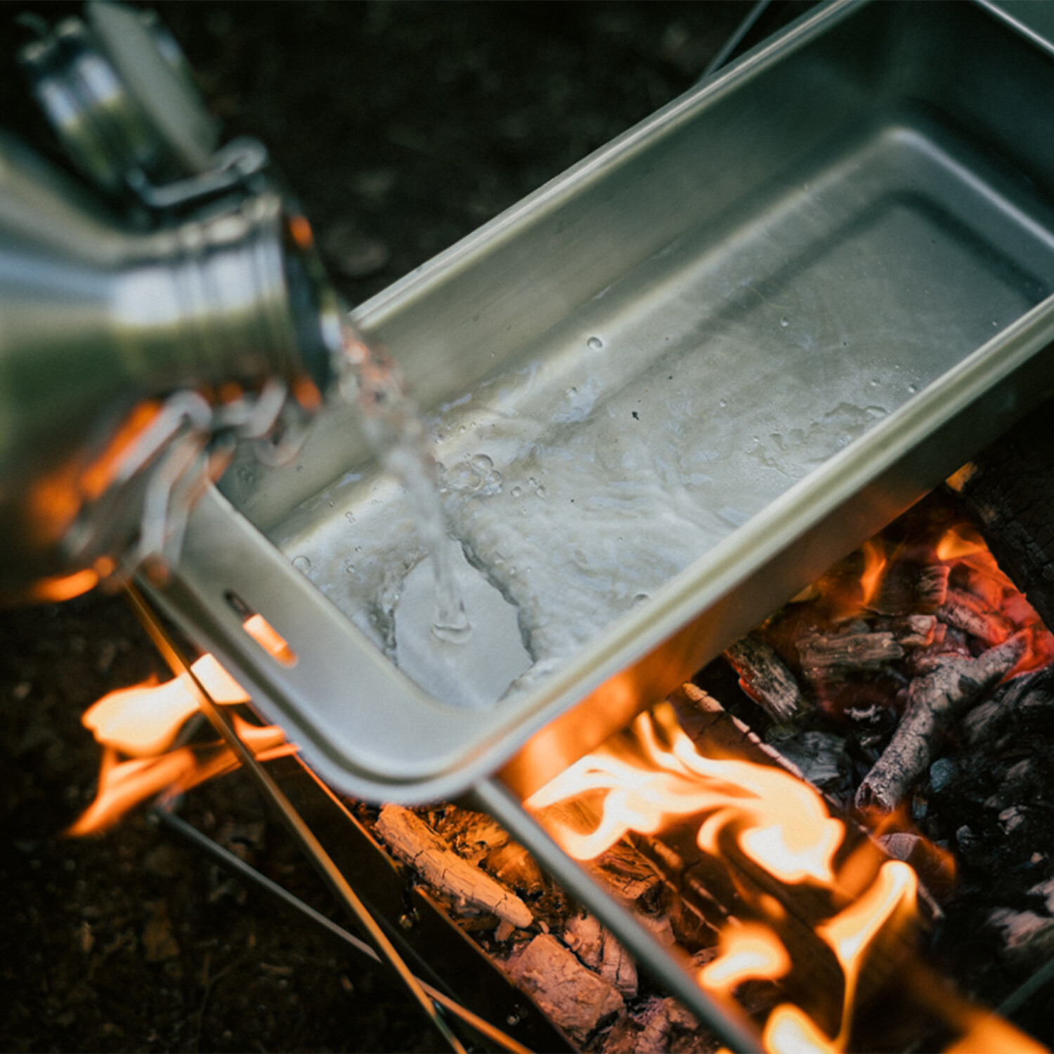 All components nest within the 2L Pot for ultimate portability. The Cook Set comes with a drawstring storage bag that efficiently houses your entire kit and keeps the rest of your gear clean.