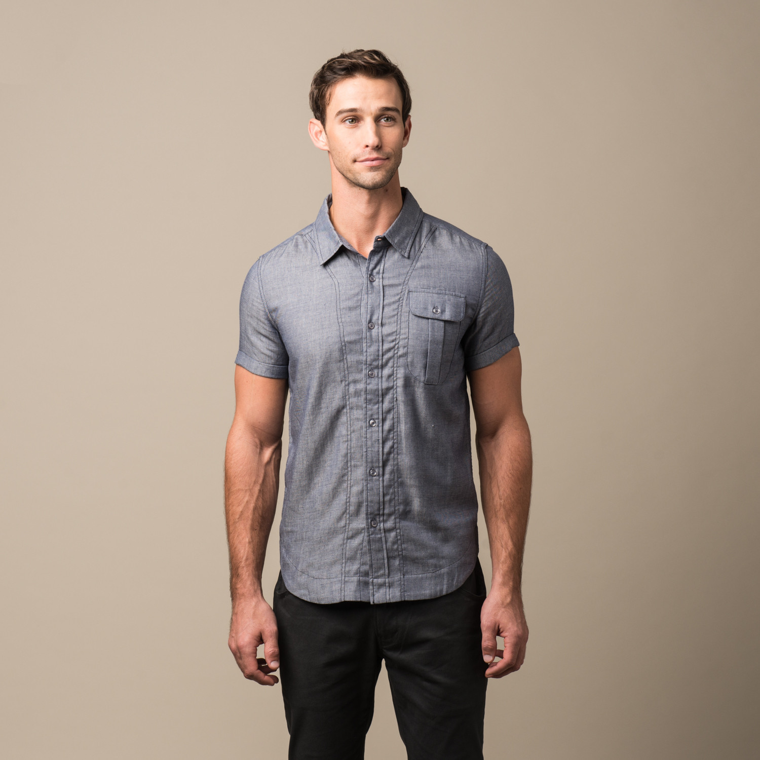 This casual-cool Vito double gauze button down is an easy breathing statement shirt with a baseball stripe detail for a look that can transition from day to night.