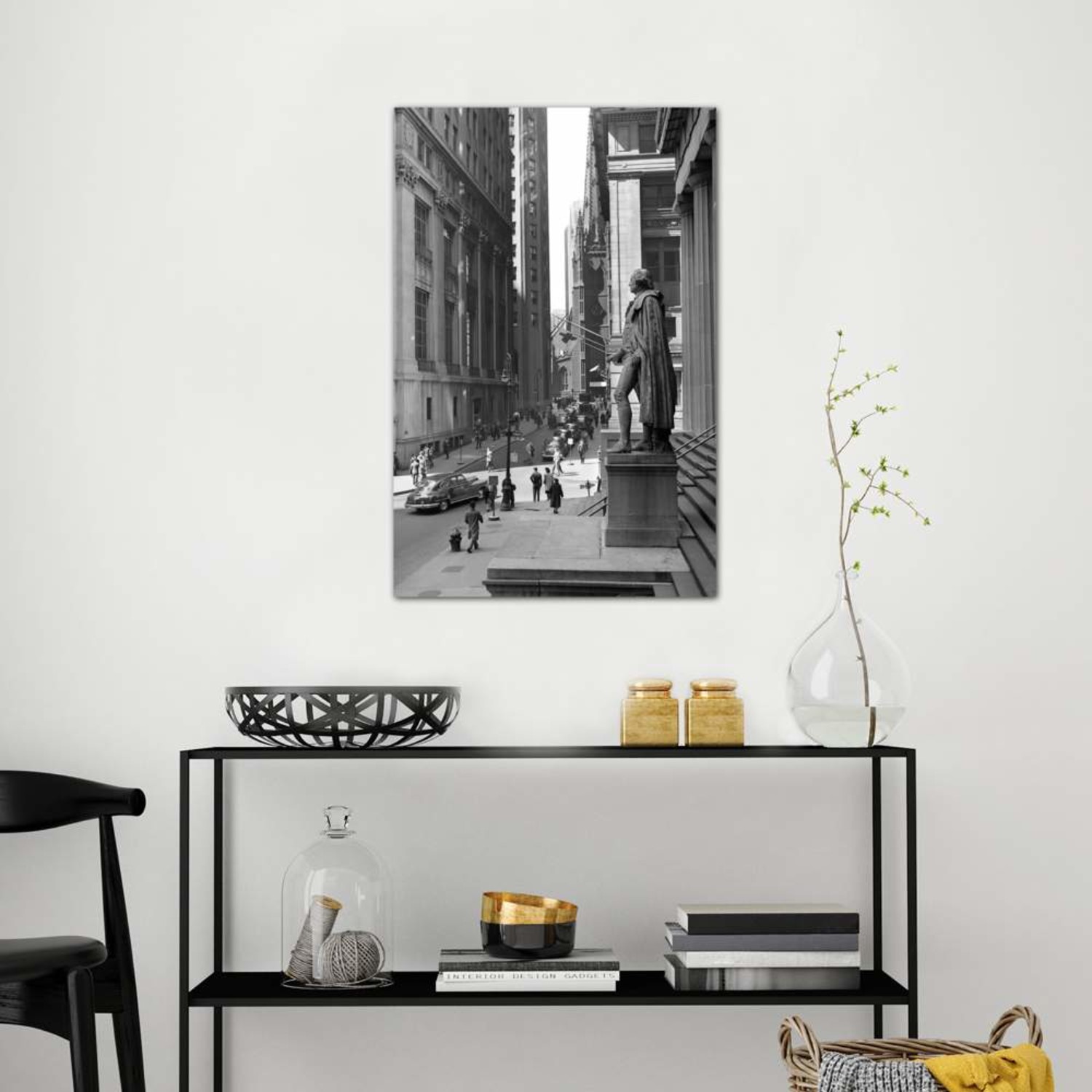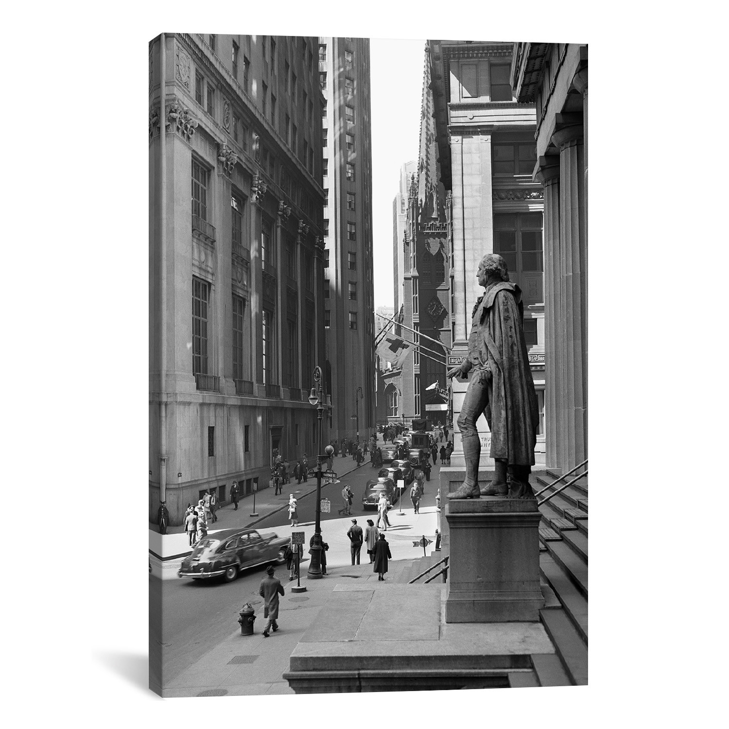 1950s Wall Street From Steps Of Federal Hall National Memorial Looking Towards Trinity Church In New York City USA // Vintage Images