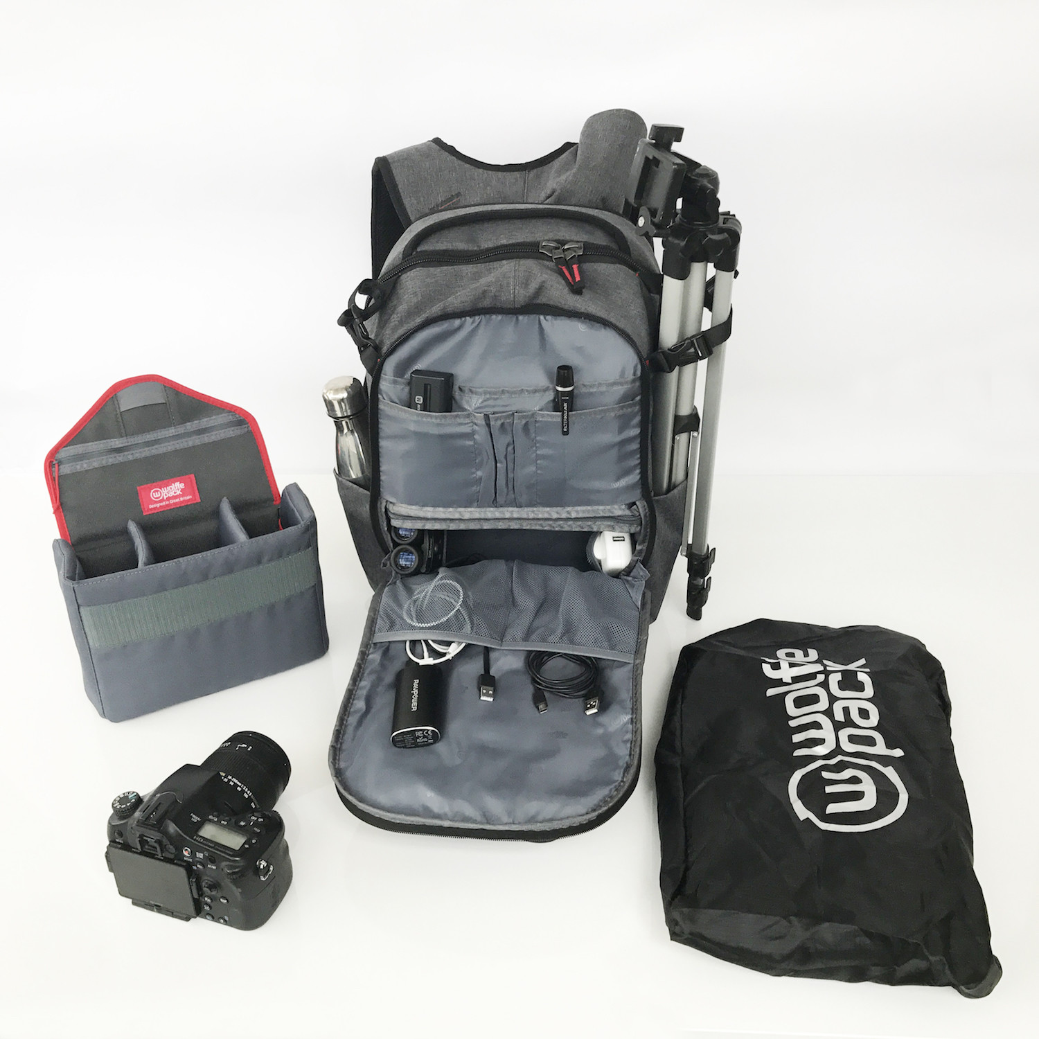 Padded & secure carry: The thick, padded, microfibre-lined pod fits snugly in the top of the bag. There is also a padded laptop pocket for up to 15.6" laptop. You never need to put the Wolffepack Capture down, meaning less risk from hard or uneven ground.