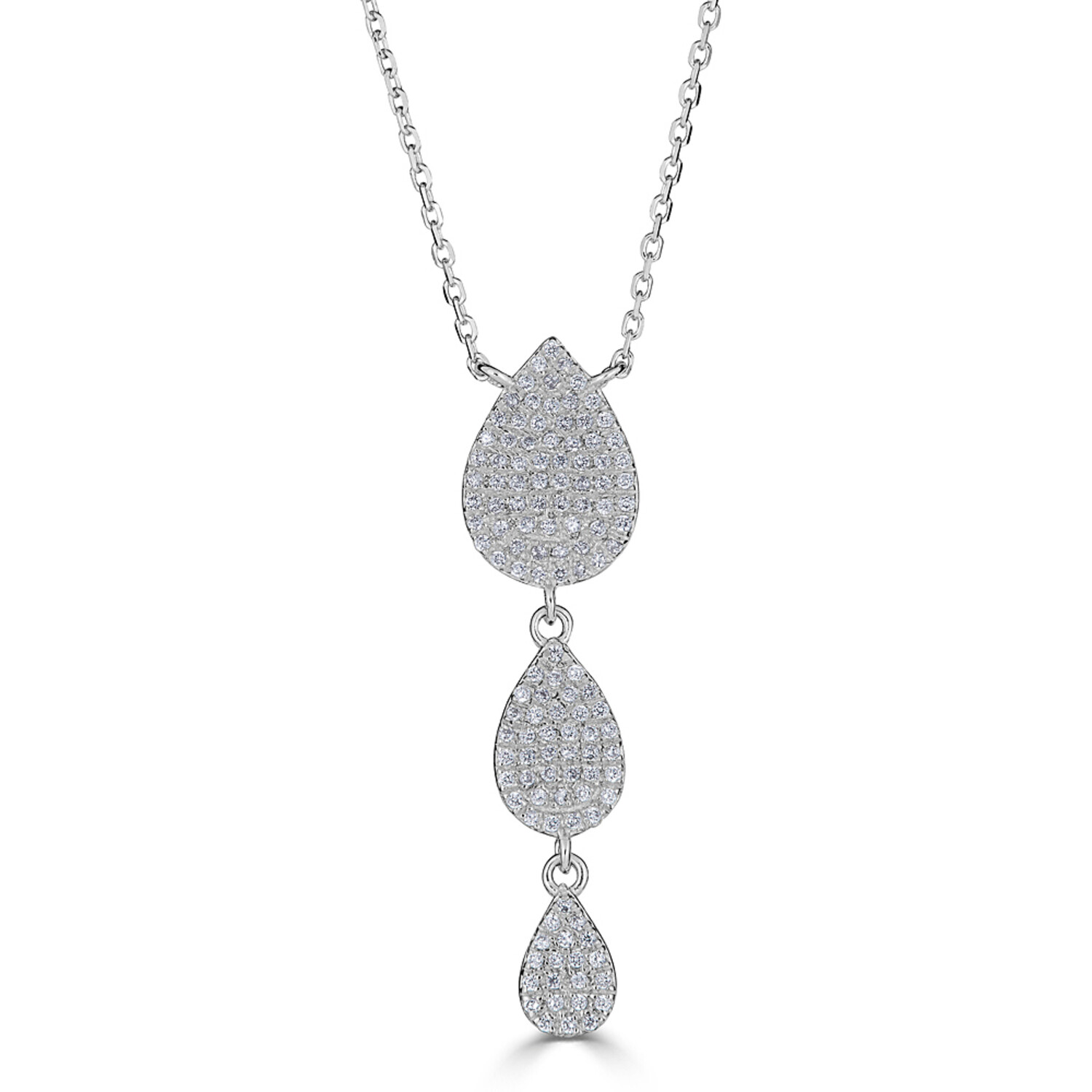 14K White Gold 0.30 ctw Natural DIamonds Pear Necklace - 16-18" Adjustable Chain