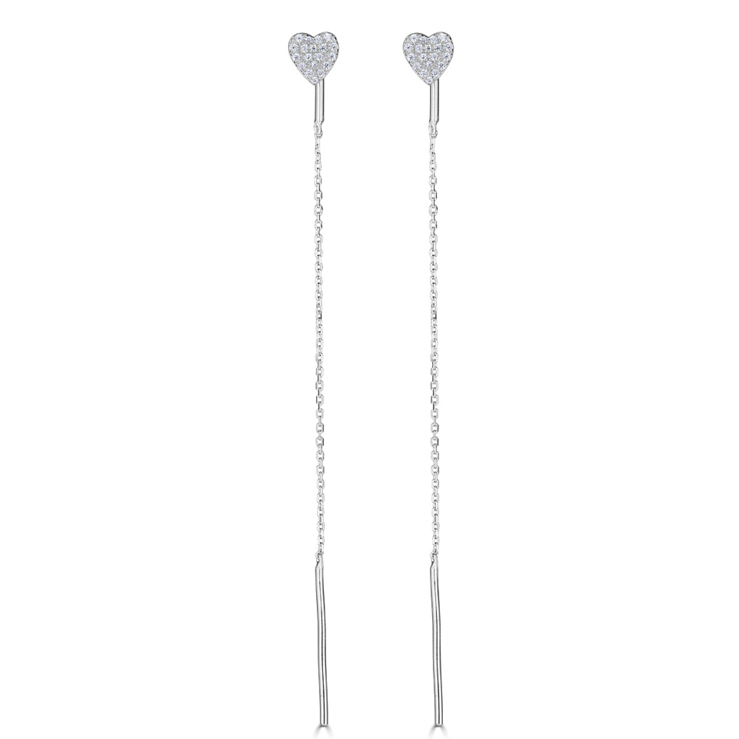 14K White Gold Diamond Filled Heart Threader Earrings V.1