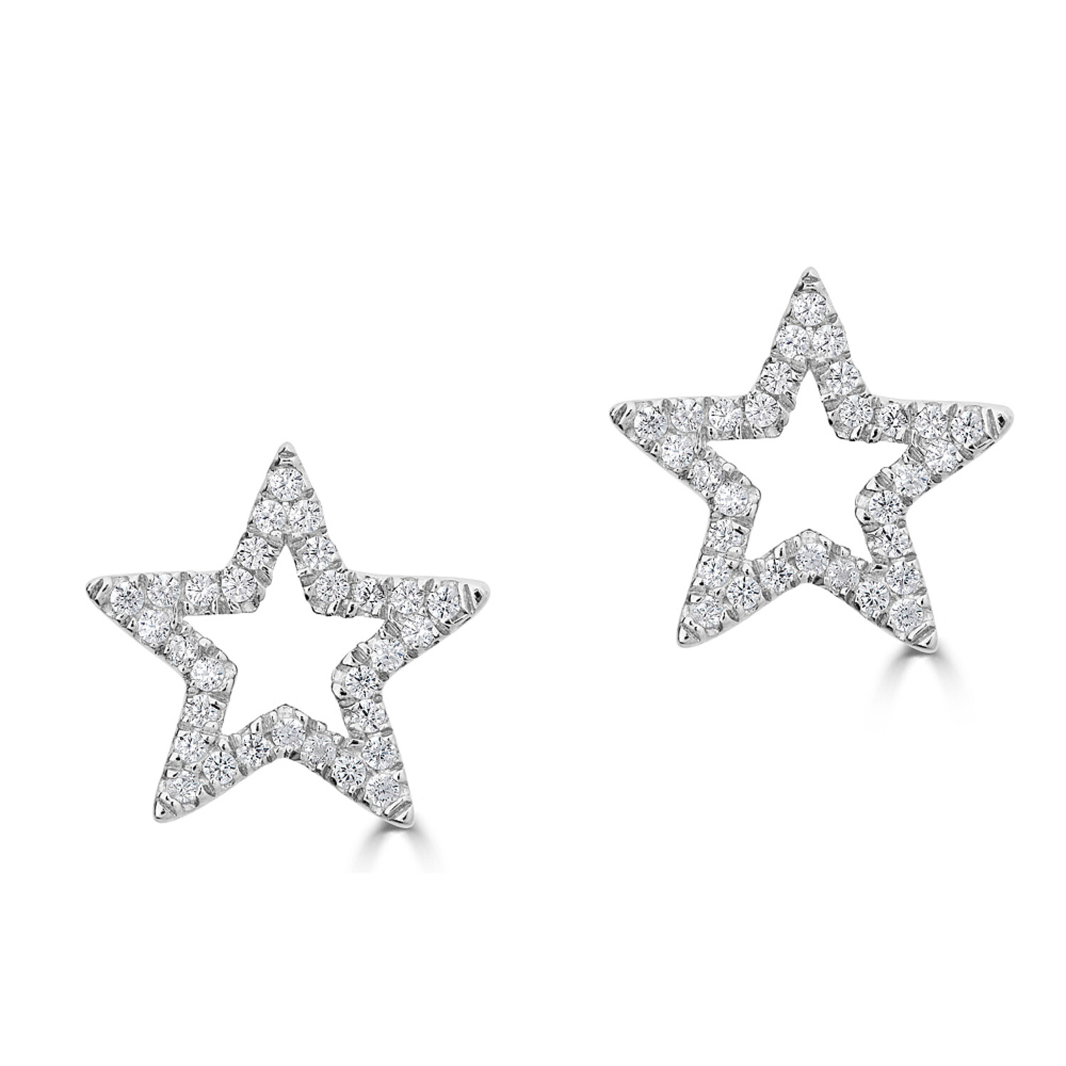14K White Gold Diamond Star Stud Earrings