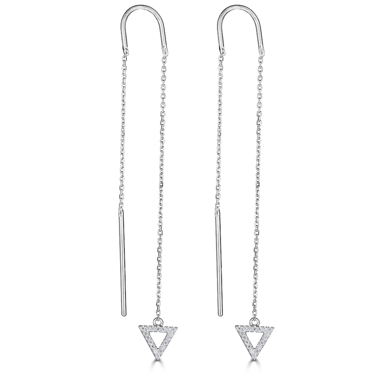 14K White Gold Diamond Triangle Outline Threader Earrings