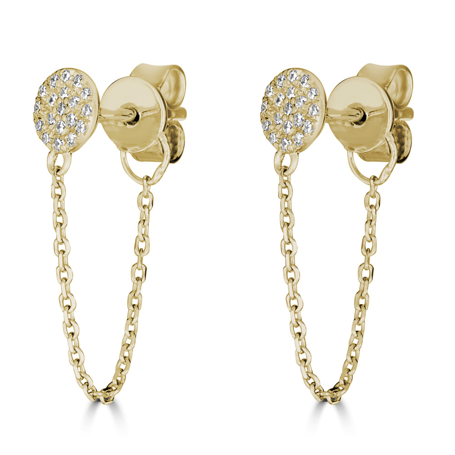 14K Yellow Gold Diamond Circle Earrings with Chain