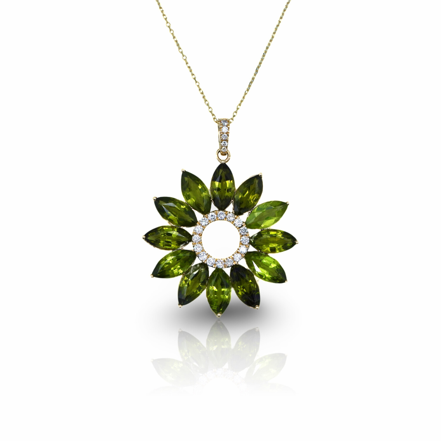 14K Yellow Gold Peridot + Diamond Pendant // Pendant Only // New