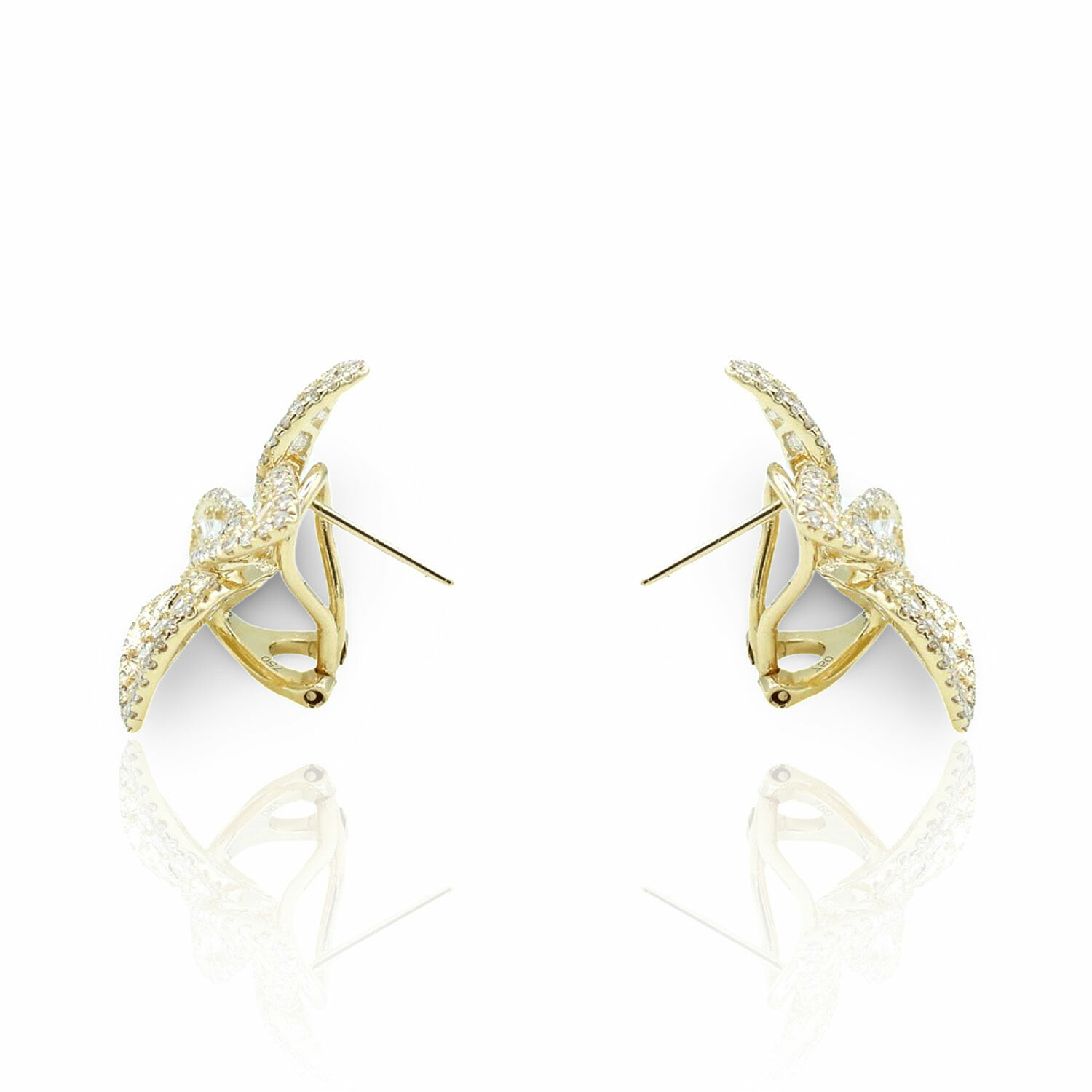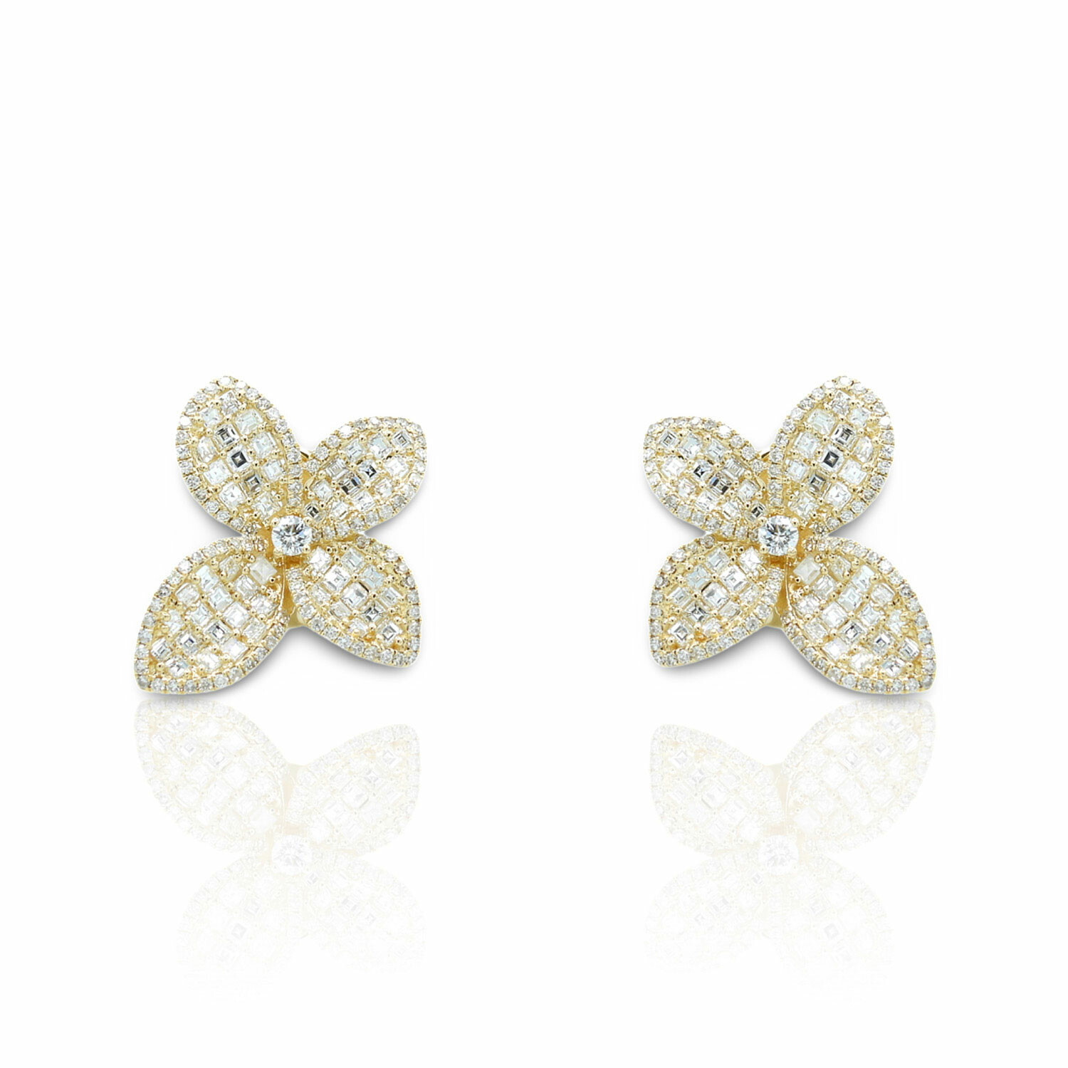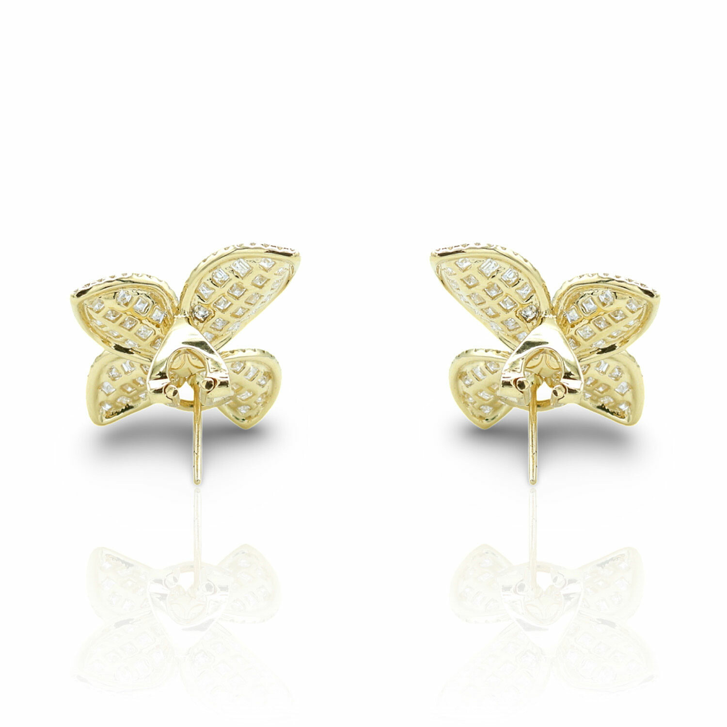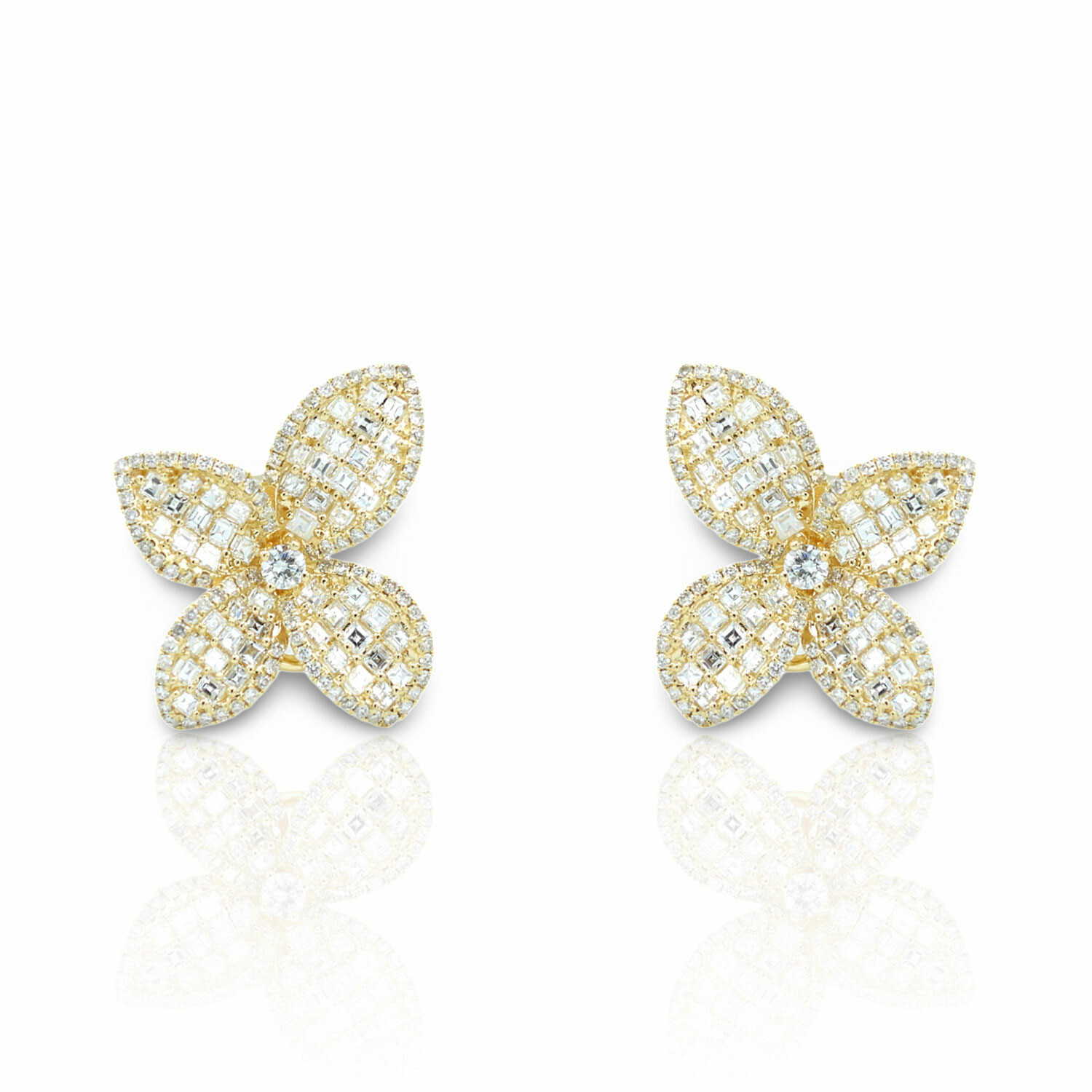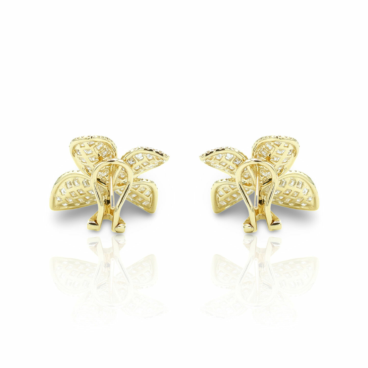 18K Yellow Gold Diamond Flower Earrings // New